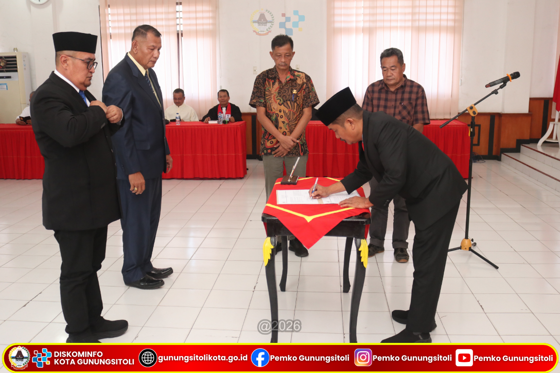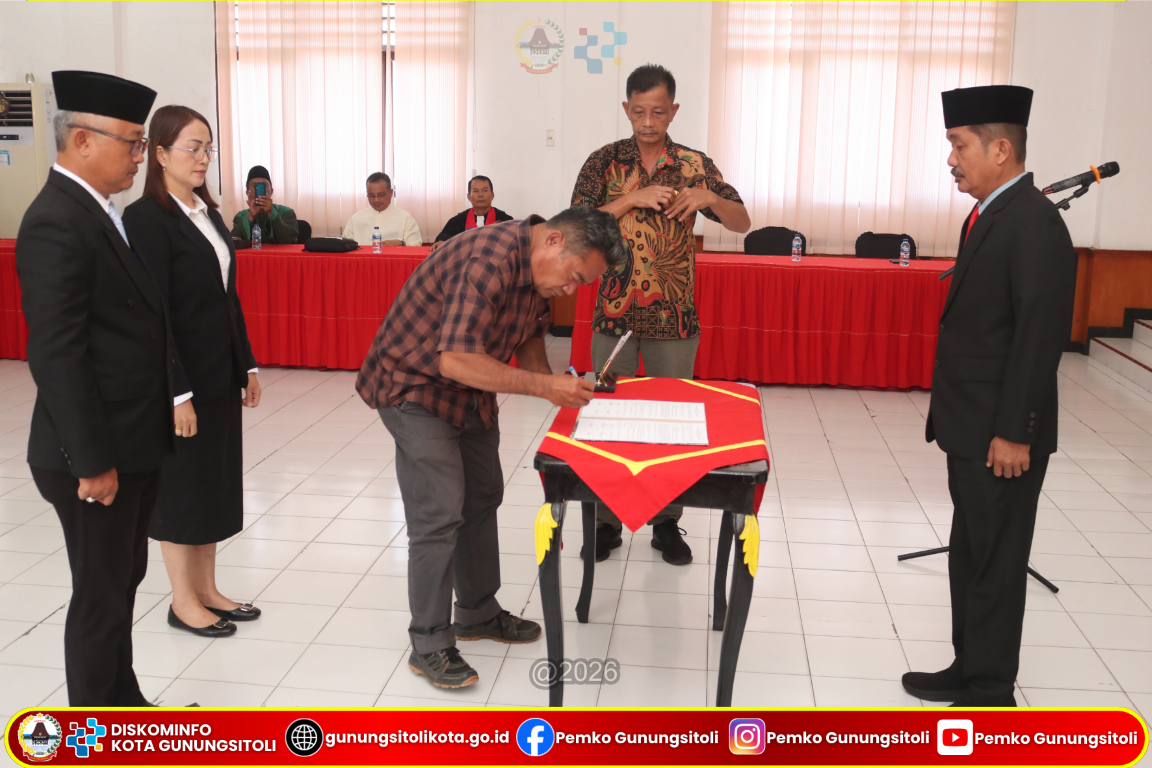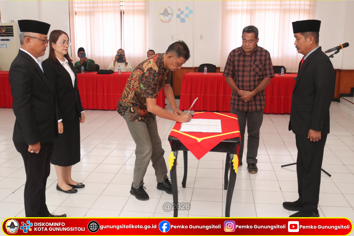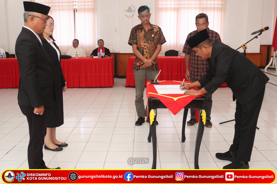 Gunungsitoli (15/01/2026) Wali Kota Gunungsitoli yang diwakili oleh Pj. Sekretaris Daerah Kota Gunungsitoli Meiman Kristian Harefa, S,Sos., M.S.P melantik sejumlah Pegawai Negeri Sipil (PNS) pada Jabatan Administrator dan Jabatan Pengawas di lingkungan Pemerintah Kota Gunungsitoli. Kegiatan pelantikan dan pengambilan sumpah/janji jabatan tersebut berlangsung di Ruang Rapat II Kantor Wali Kota Gunungsitoli, Kamis (15/01/26).