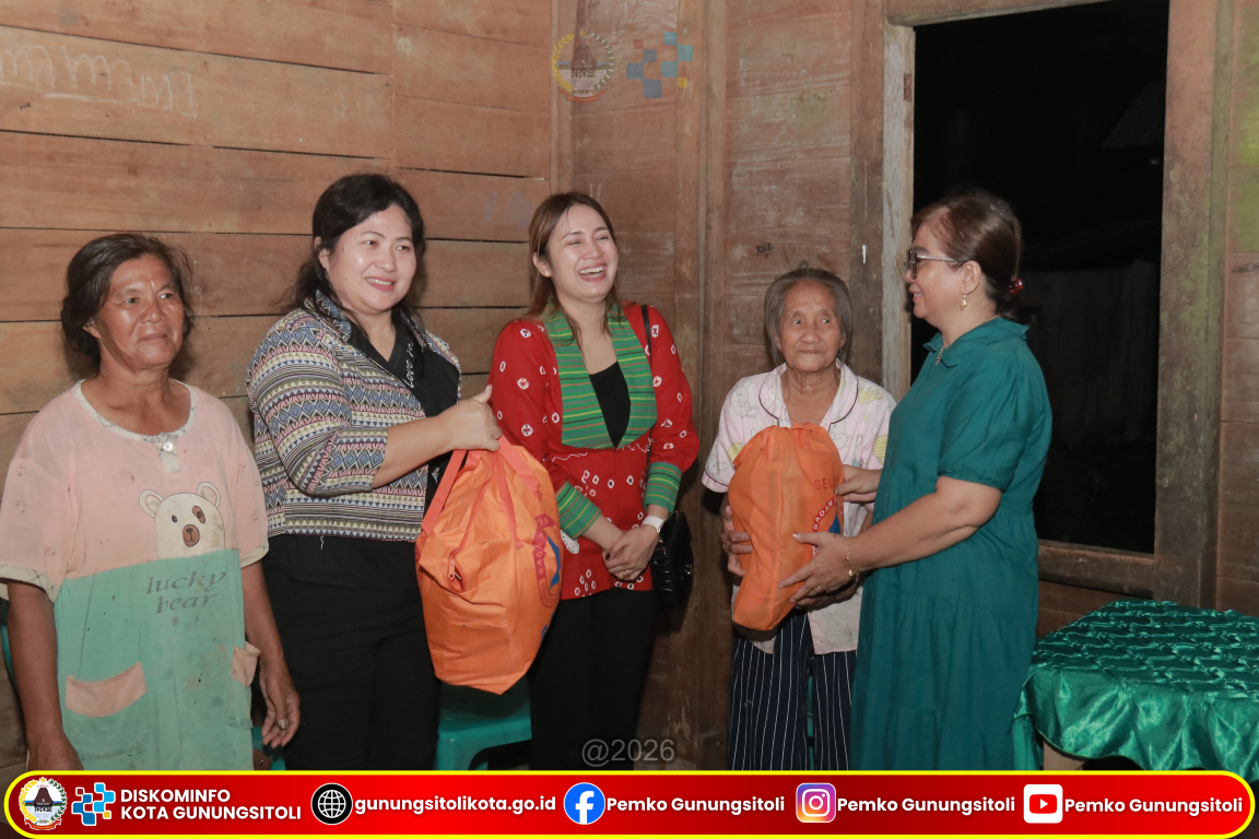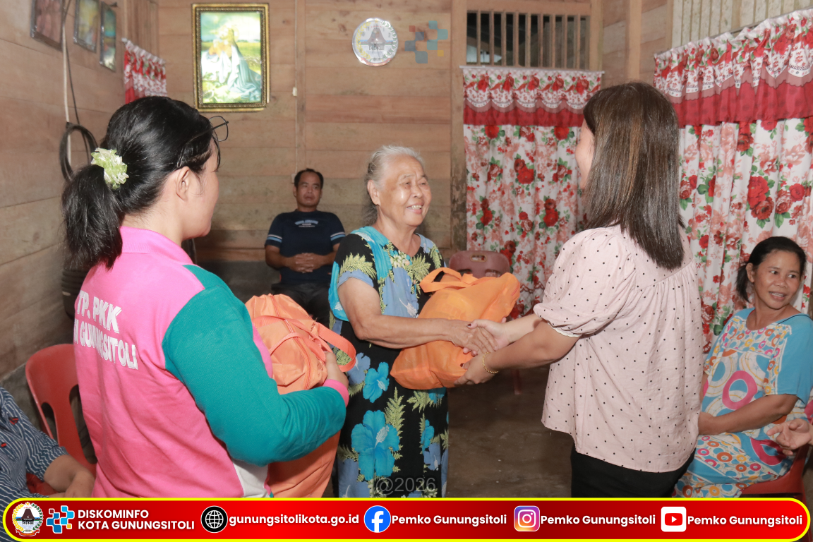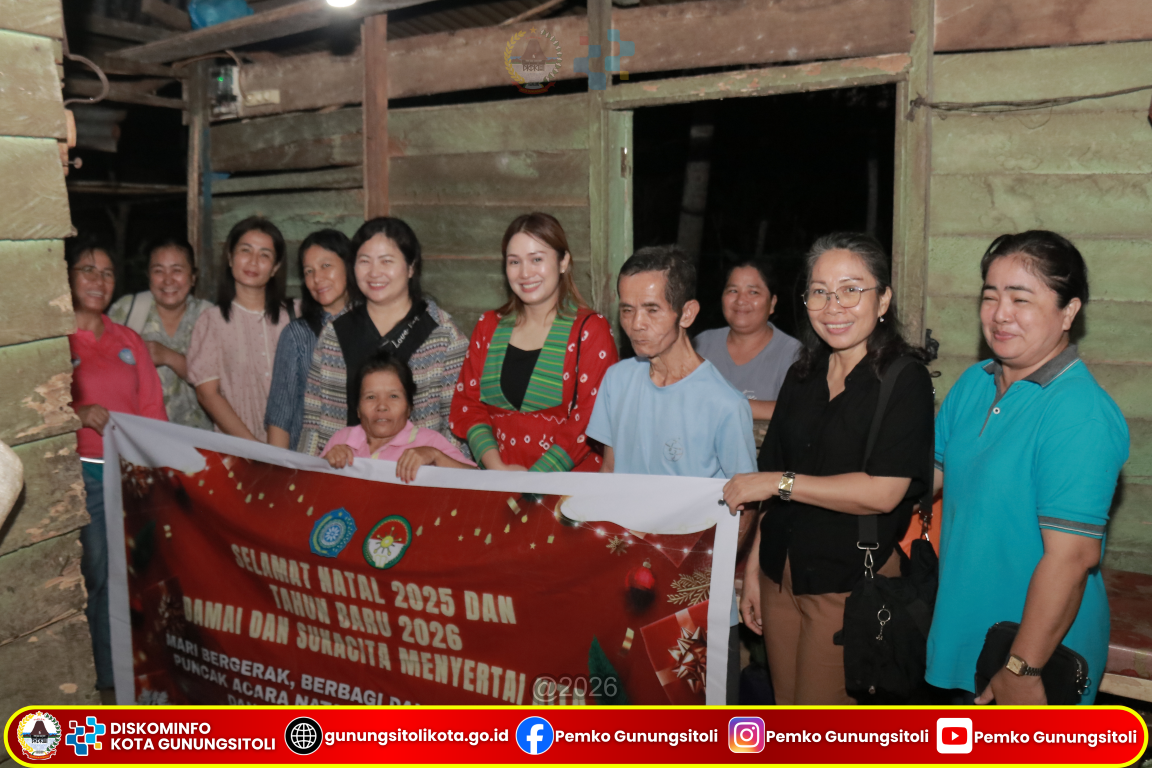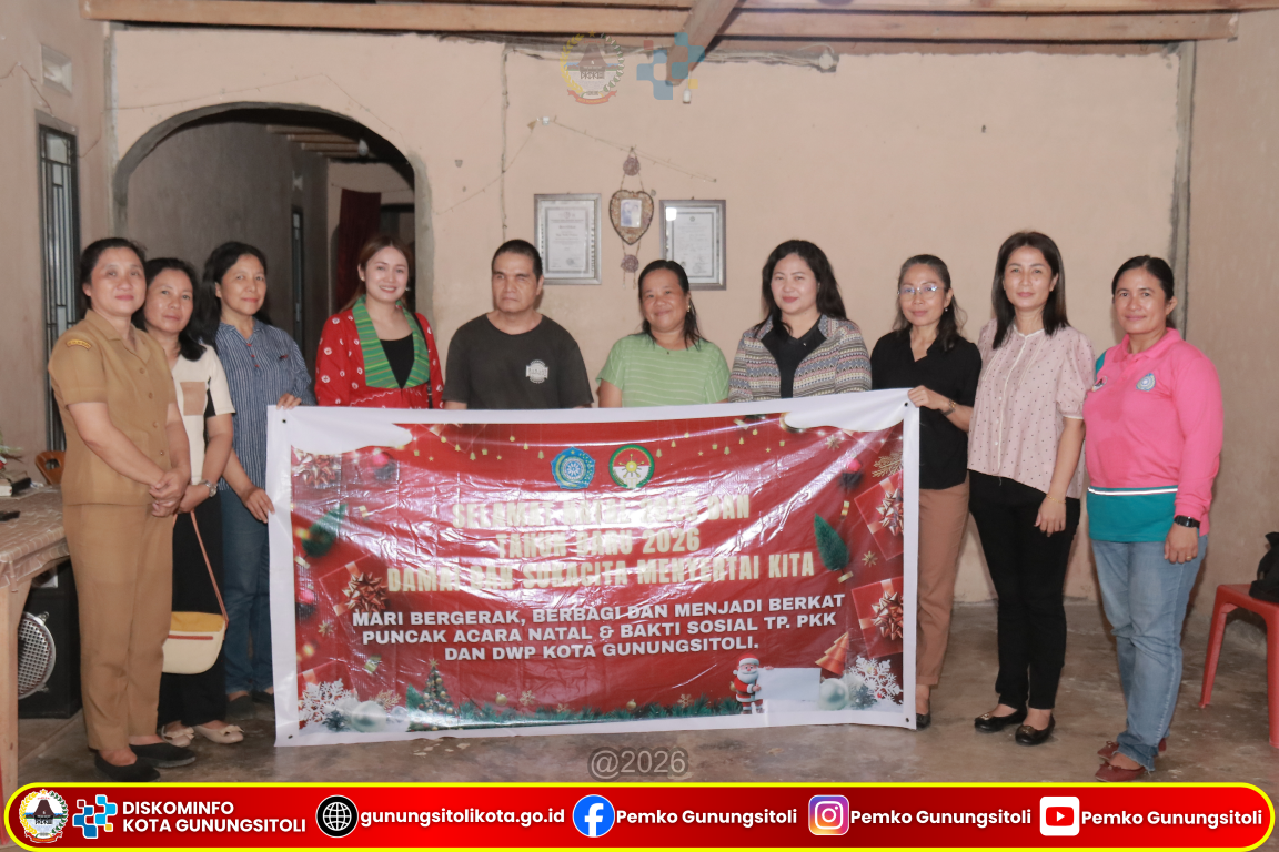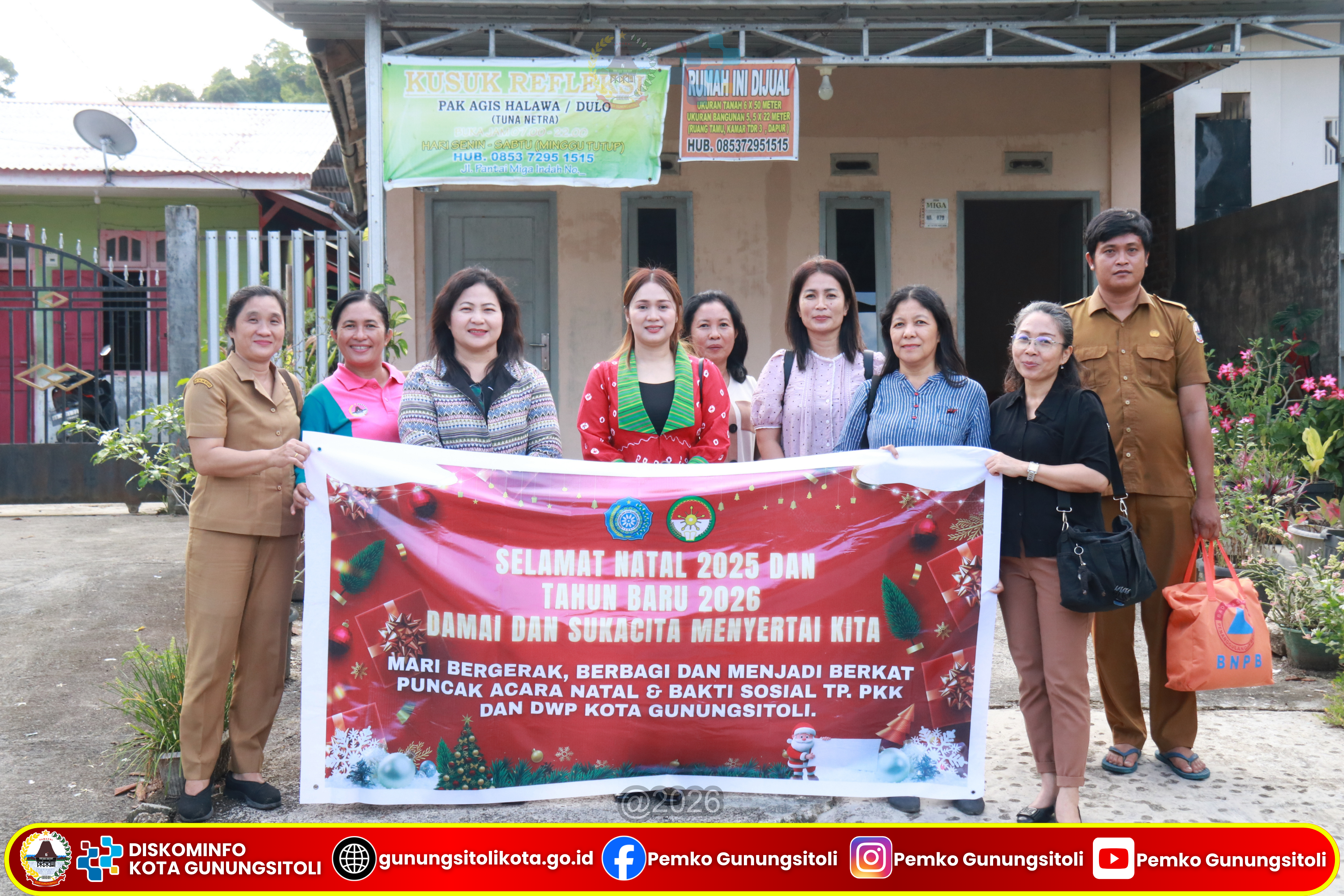 Gunungsitoli, (14/1/2026) Ketua Tim Penggerak PKK Kota Gunungsitoli, Ny. Veny Sowa’a Laoli, didampingi Ketua Dharma Wanita Persatuan (DWP) Kota Gunungsitoli, Ny. Dita Meiman Harefa, bersama dengan BPBD Kota Gunungsitoli , menyapa serta berbagi kasih kepada masyarakat tidak mampu dan penyandang disabilitas yang tersebar di enam desa di wilayah Kota Gunungsitoli, dalam rangka Syukuran Natal dan Tahun Baru TP. PKK dan DWP Kota Gunungsitoli, yang dilaksanakan pada hari Selasa (13/1/2026).