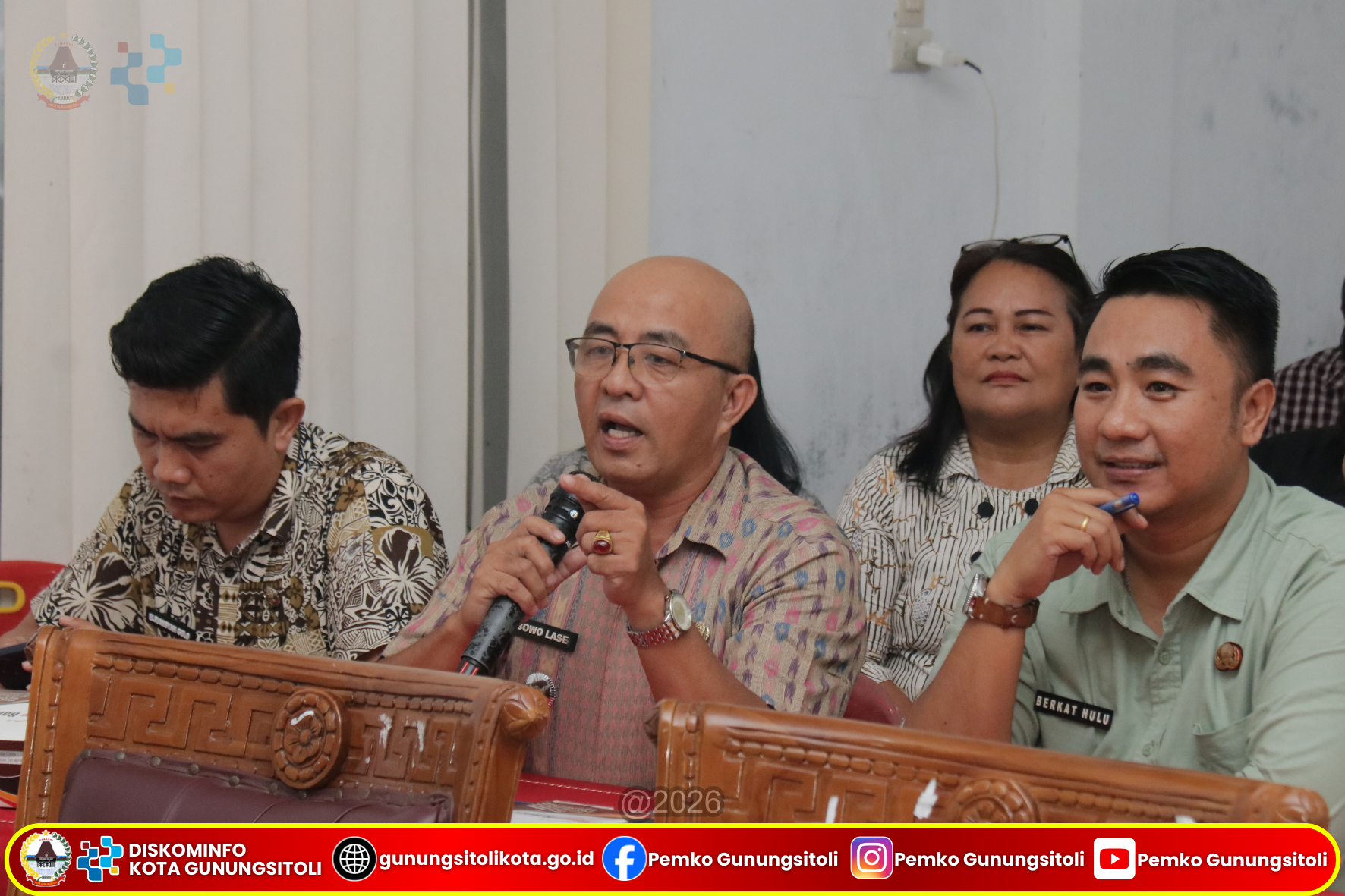 Gunungsitoli, (29/1/2026) Wali Kota Gunungsitoli, Sowa’a Laoli, S.E., M.Si., didampingi Penjabat Sekretaris Daerah Kota Gunungsitoli Meiman Kristian Harefa, S.Sos., M.S.P., secara resmi membuka Rapat Koordinasi Pemerintahan Desa Tahun 2026 yang difokuskan pada Program Strategi Nasional Penyusunan dan Pengelolaan APB Desa Tahun Anggaran 2026, bertempat di Ruang Rapat III Kantor Wali Kota Gunungsitoli, Kamis (29/1/2026).