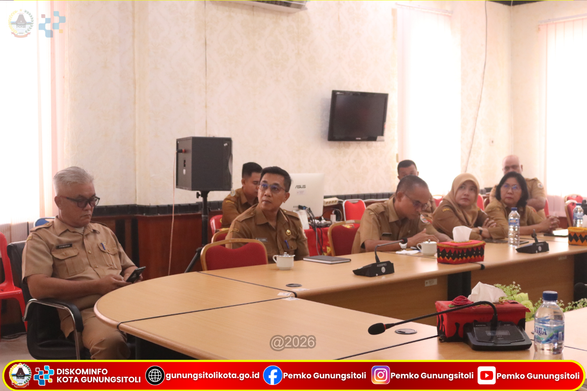 Gunungsitoli (19/01/2026) Wali Kota Gunungsitoli, Sowa’a Laoli, S.E., M.Si., mengikuti Rapat Koordinasi Pembahasan Langkah Konkret Pengendalian Inflasi, Antisipasi Kenaikan Harga Tiket Pesawat Menjelang Bulan Ramadhan dan Hari Raya Idul Fitri, serta Evaluasi Dukungan Pemerintah Daerah terhadap Program Nasional 3 Juta Rumah, yang dilaksanakan secara daring melalui Zoom Meeting dan diikuti dari Ruang Rapat Center Kantor Wali Kota Gunungsitoli, Senin (19/01/2026).