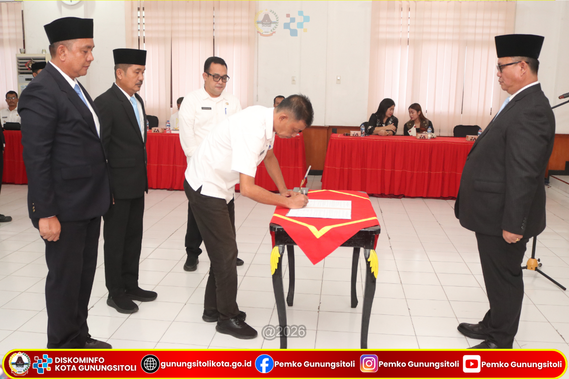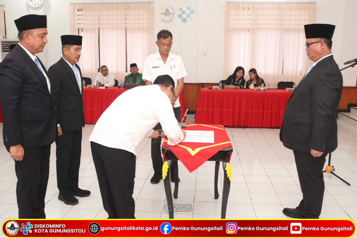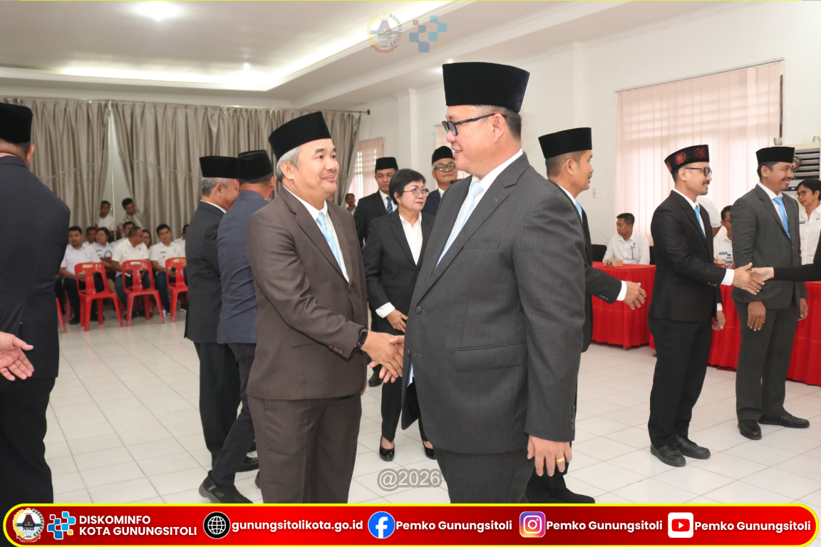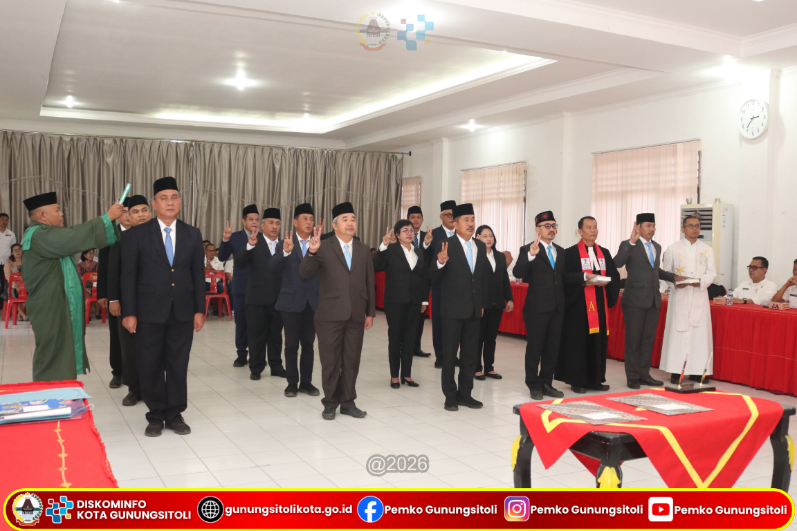 Gunungsitoli (14/1/2026) Pemerintah Kota Gunungsitoli melaksanakan pelantikan dan pengambilan sumpah/janji jabatan Pegawai Negeri Sipil (PNS) di lingkungan Pemerintah Kota Gunungsitoli yang digelar di Ruang Rapat II Kantor Wali Kota Gunungsitoli, Rabu (14/1/2026).