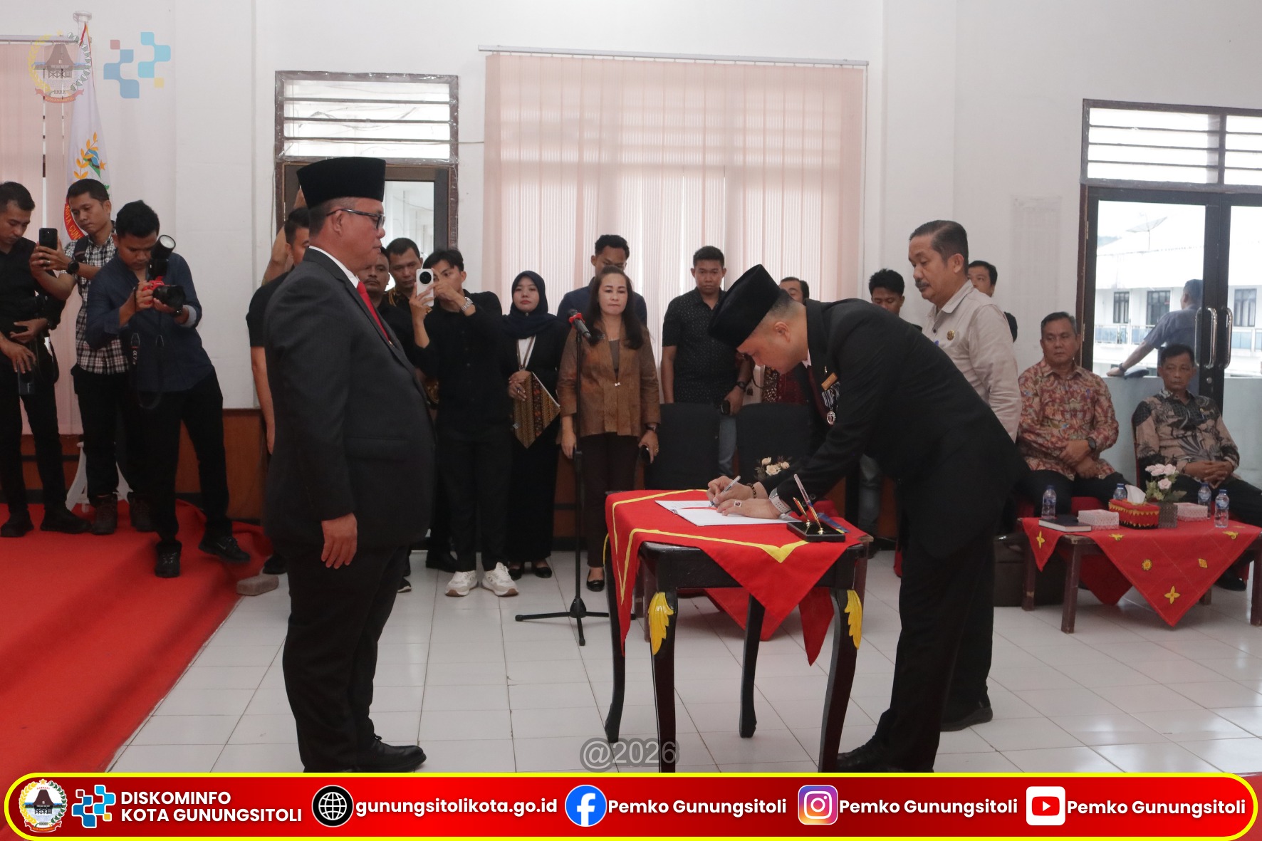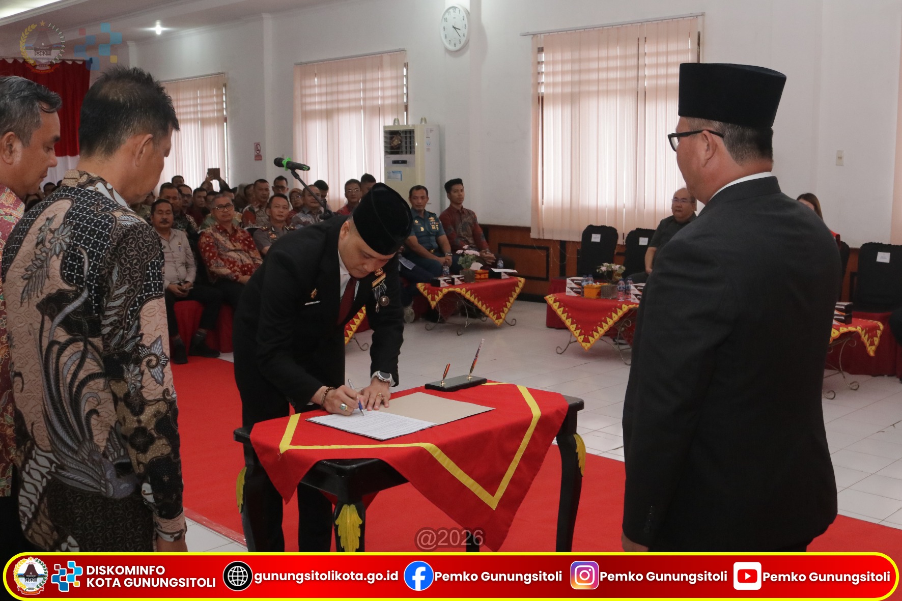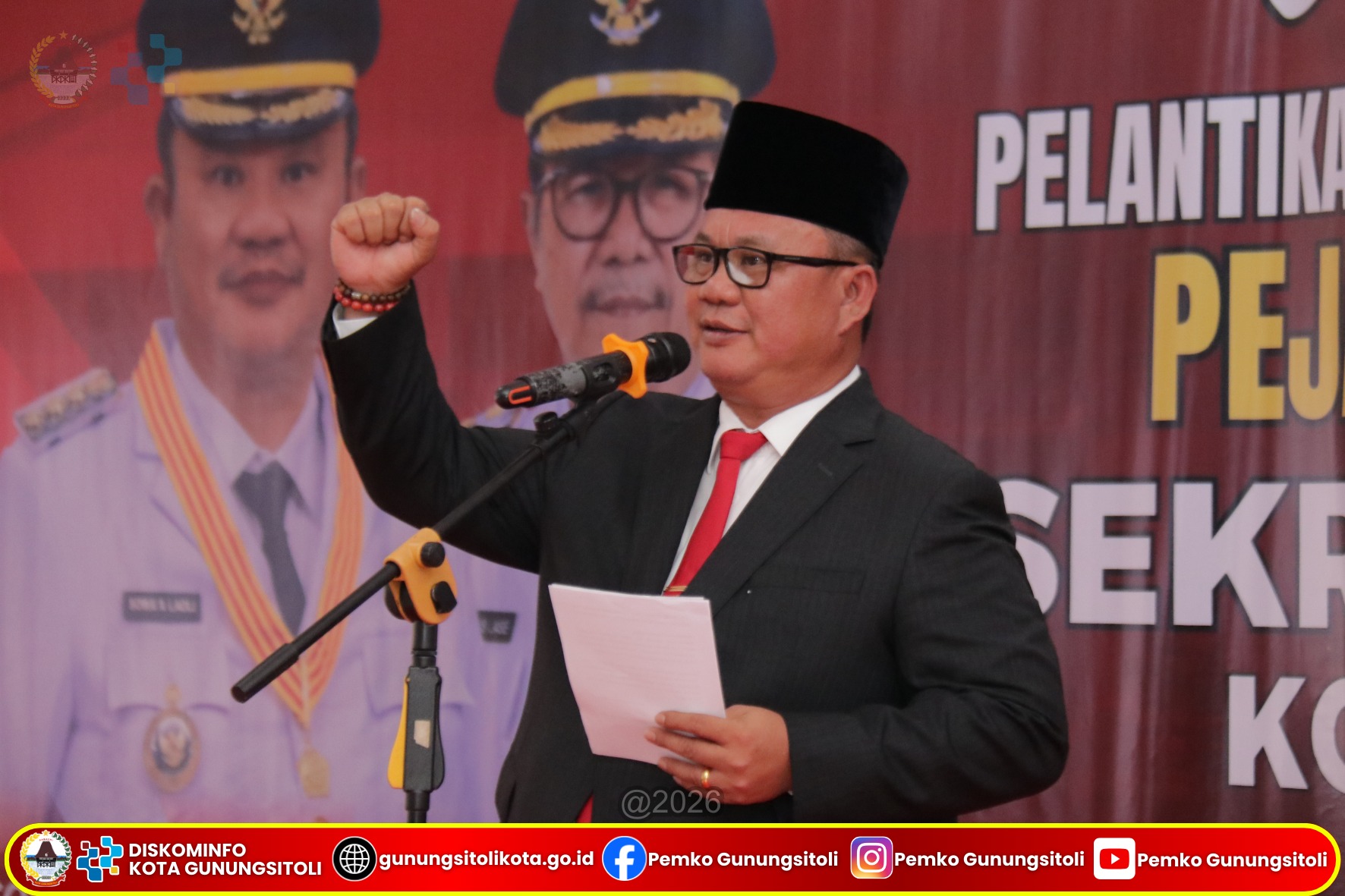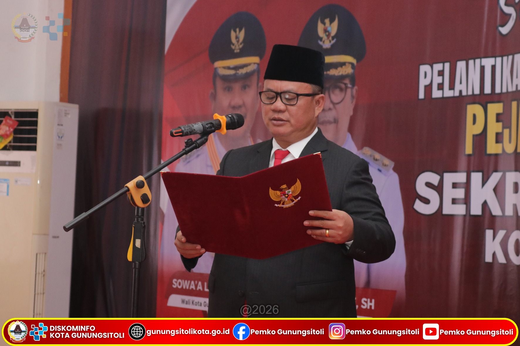 Gunungsitoli (30/01/2026) Wali Kota Gunungsitoli, Sowa’a Laoli, S.E., M.Si., melantik dan mengambil sumpah/janji jabatan Sekretaris Daerah Kota Gunungsitoli Andhika P. Laoly, SSTP., M.Si., CGCAE yang dirangkaikan dengan acara serah terima jabatan, bertempat di Ruang Rapat II Kantor Wali Kota Gunungsitoli, Jumat (30/1/26).