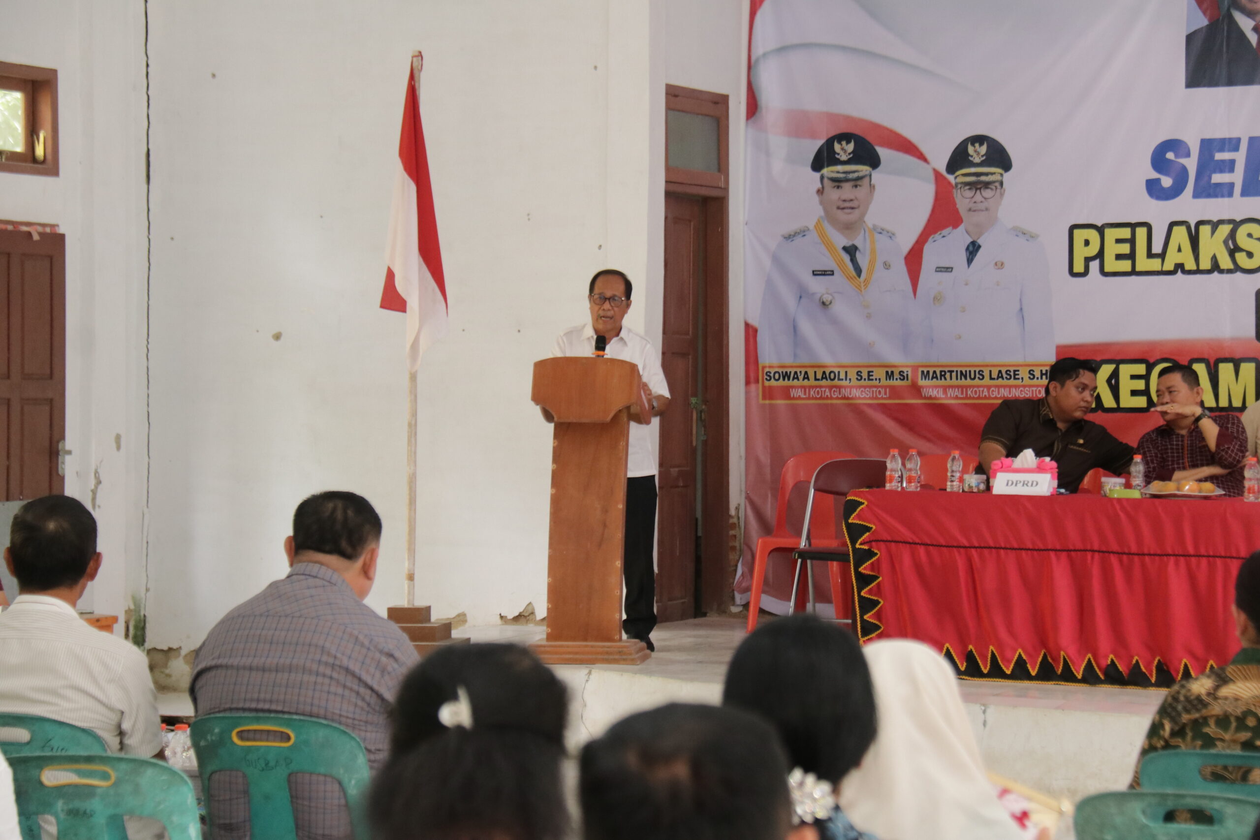 Turut hadir anggota DPRD Dapil 2 (Dua) Kota Gunungsitoli, Firman Zebua, S.H., dan Yatatema Zebua, S.E., Asisten Pemerintahan dan Kesejahteraan Rakyat Setda Kota Gunungsitoli Drs. Arham Dusky Hia, M.Si, Camat dan Sekretaris Camat Gunungsitoli Barat, Forkopimca Gunungsitoli Barat, para Kepala OPD lingkup Pemerintah Kota Gunungsitoli, serta undangan lainnya.