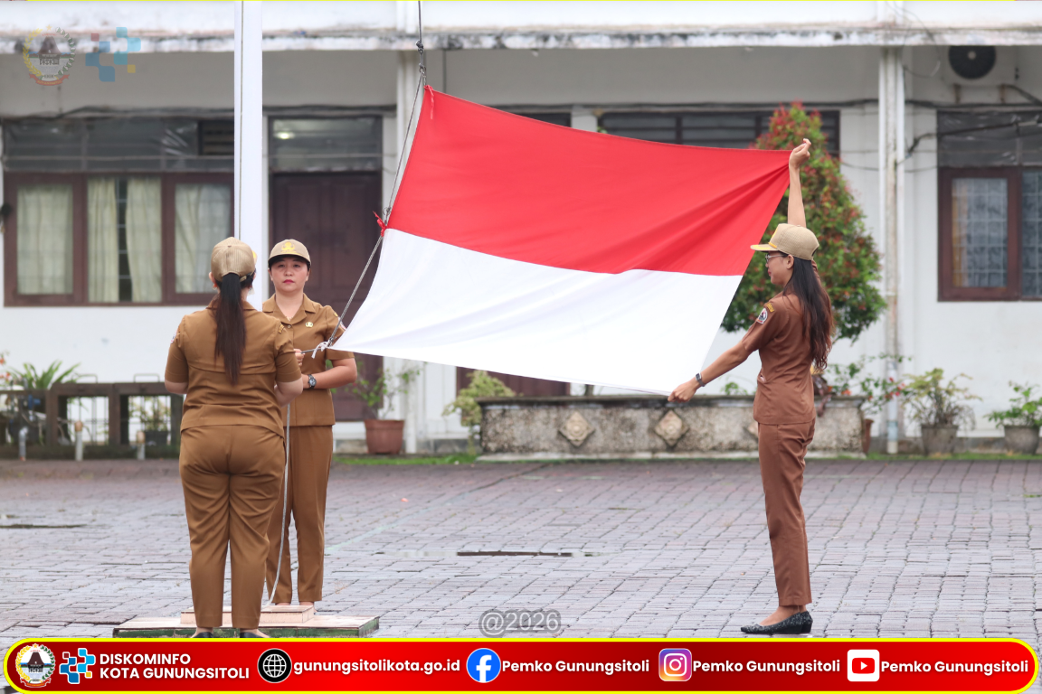 Senin (09/02/2026) Pemerintah Kota Gunungsitoli melaksanakan Upacara Bendera rutin hari Senin yang berlangsung di Halaman Kantor Wali Kota Gunungsitoli. Pada pelaksanaan upacara tersebut, petugas upacara dari Dinas Pemberdayaan Perempuan dan Perlindungan Anak (P5A) Kota Gunungsitoli, dengan Pembina Upacara Kepala Dinas P5A Kota Gunungsitoli Wilser Juliadi Napitupulu, S.Si., Apt, MPH, diikuti oleh Sekretaris Daerah Kota Gunungsitoli, para Staf Ahli, Asisten, Pimpinan Organisasi Perangkat Daerah (OPD), para ASN, CPNS, serta tenaga non-ASN di lingkungan Pemerintah Kota Gunungsitoli, Senin (09/02/2026).