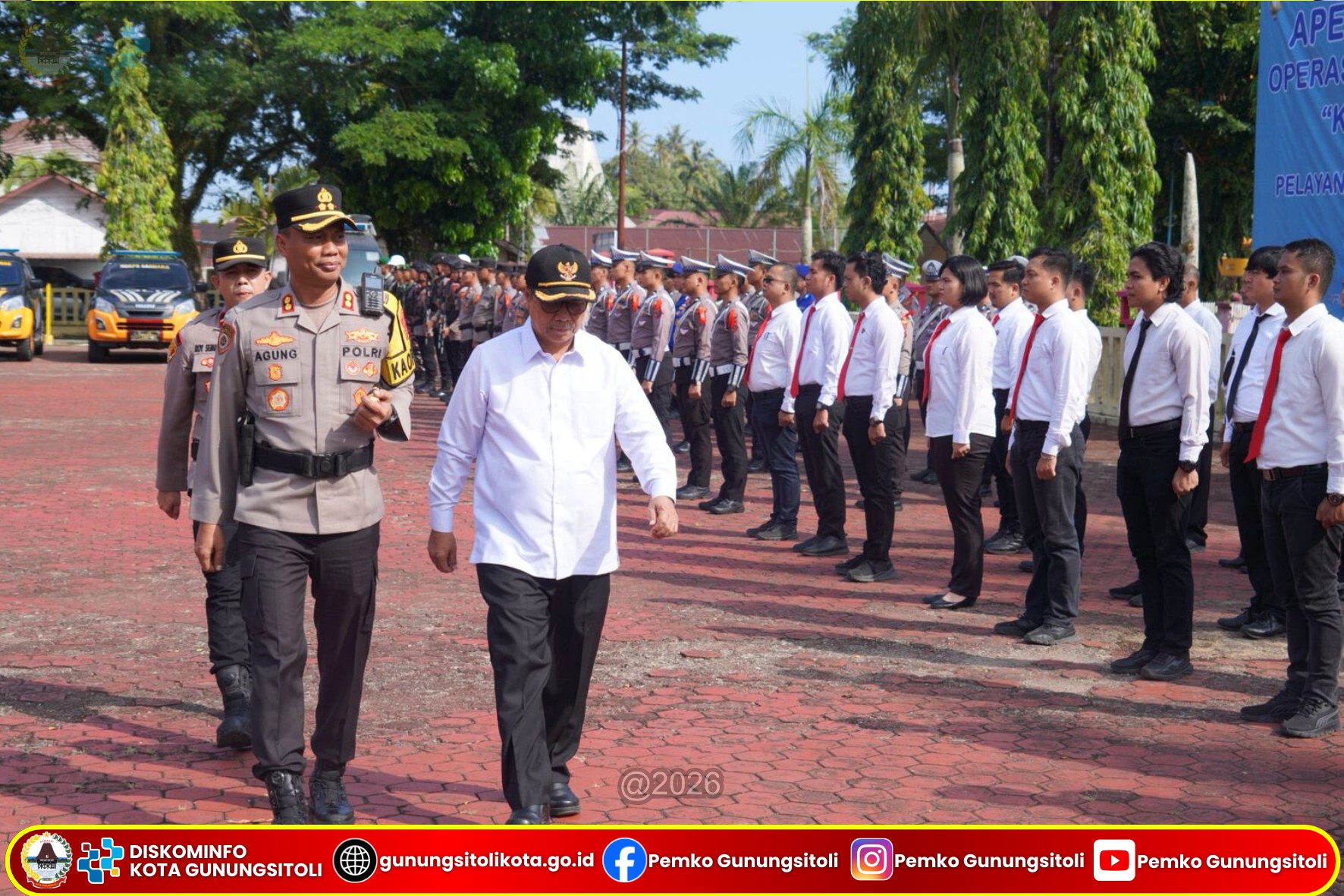 Pada kesempatan tersebut, Wakil Wali Kota bersama Kapolres Nias melakukan pengecekan pasukan yang terdiri dari unsur TNI, Polri, Satpol PP, Dinas Perhubungan, tenaga kesehatan, serta instansi terkait lainnya yang terlibat dalam operasi pengamanan.