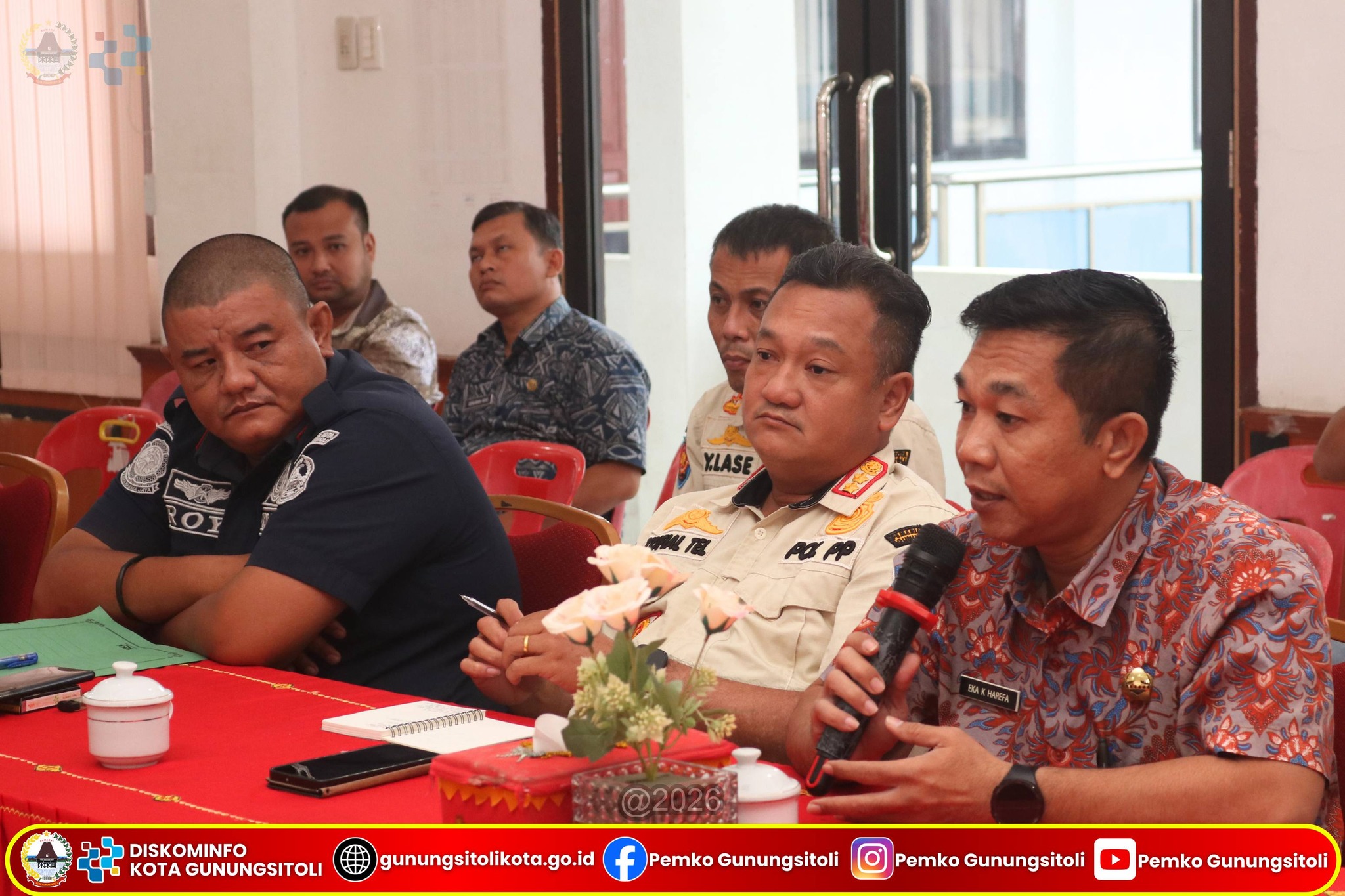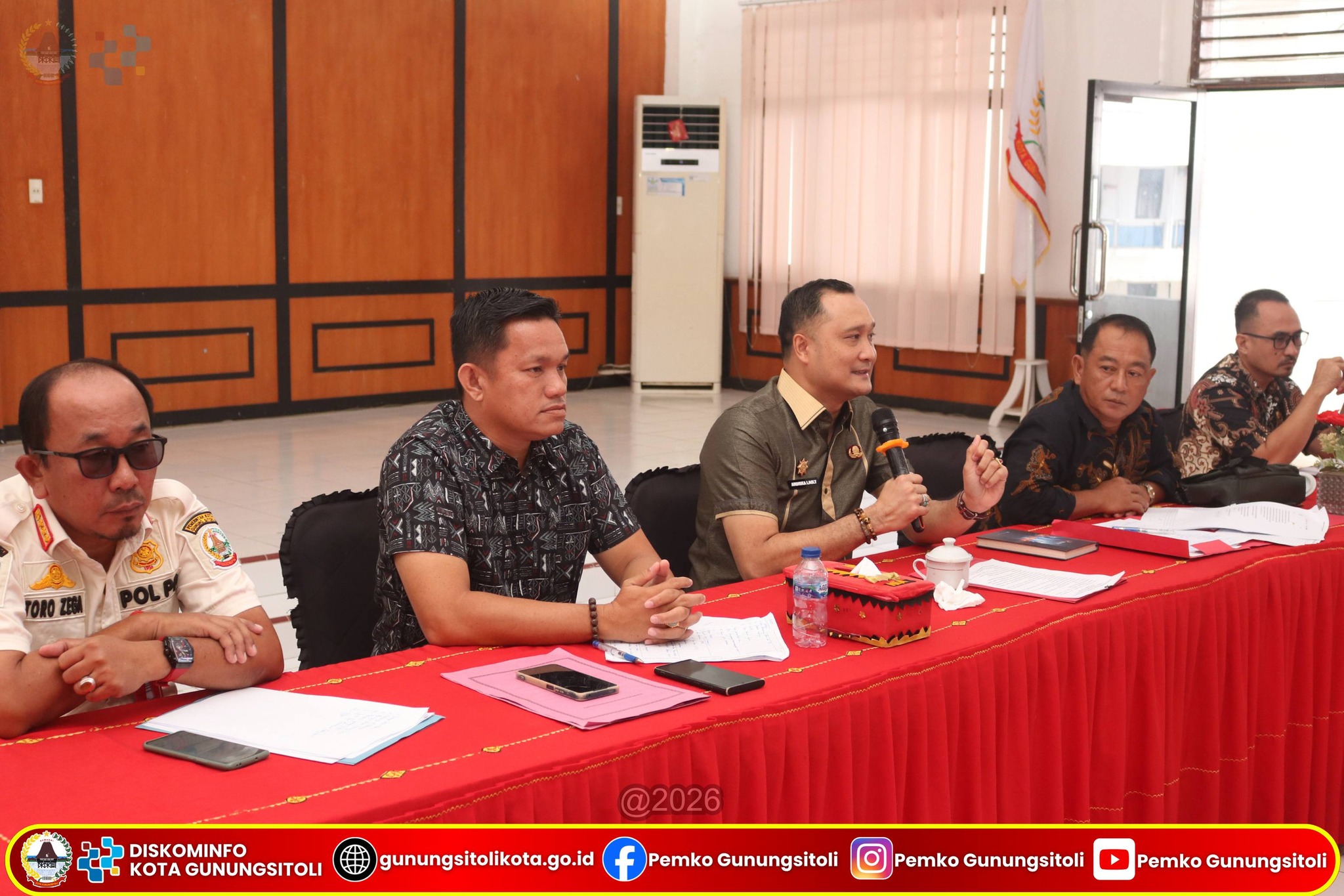 ​Rapat ini dihadiri oleh para Asisten Sekda, Staf Ahli, Kepala Perangkat Daerah teknis serta jajaran terkait lainnya di lingkungan Pemerintah Kota Gunungsitoli. Pertemuan ini merupakan implementasi dari Keputusan Wali Kota Gunungsitoli nomor 100.3.3.3 – 44 tahun 2026 tentang pembentukan tim terpadu yang bertugas mengawal stabilitas keamanan wilayah.