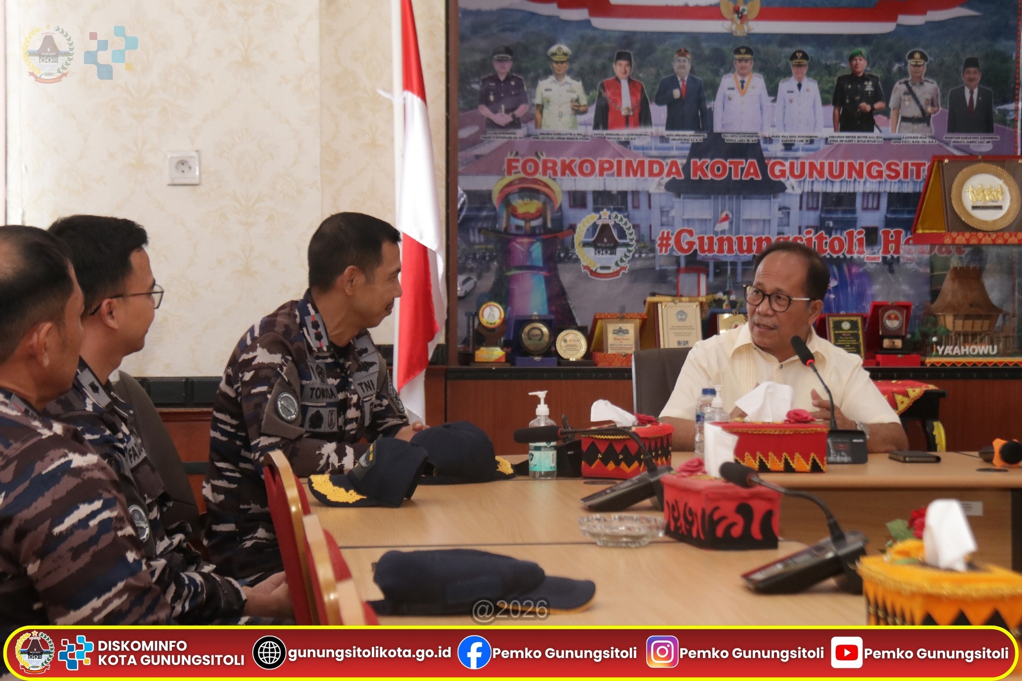 Gunungsitoli, (11 Maret 2026) – Wakil Wali Kota Gunungsitoli, Martinus Lase, S.H., didampingi Sekretaris Daerah Kota Gunungsitoli menerima audiensi Komandan KRI Bung Karno-369, Letkol Laut (P) Tomosa Uskarlind Larosa, M.Tr.Opsla., beserta para Perwira KRI dan Perwira Pangkalan TNI AL (Lanal) Nias, bertempat di Ruang Rapat Center Kantor Wali Kota Gunungsitoli, Rabu (11/03/2026).
