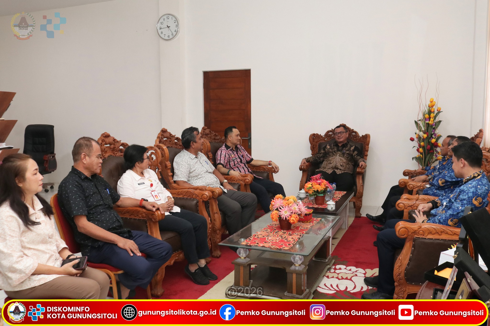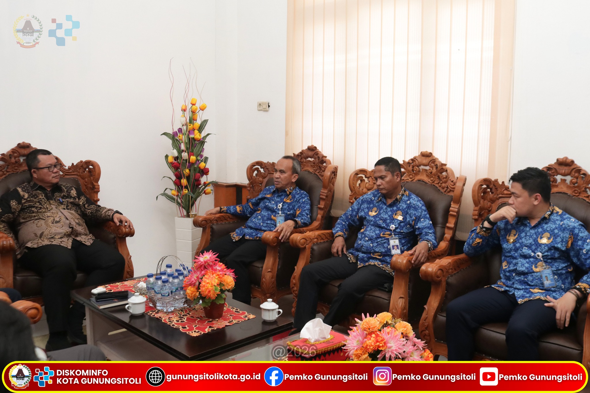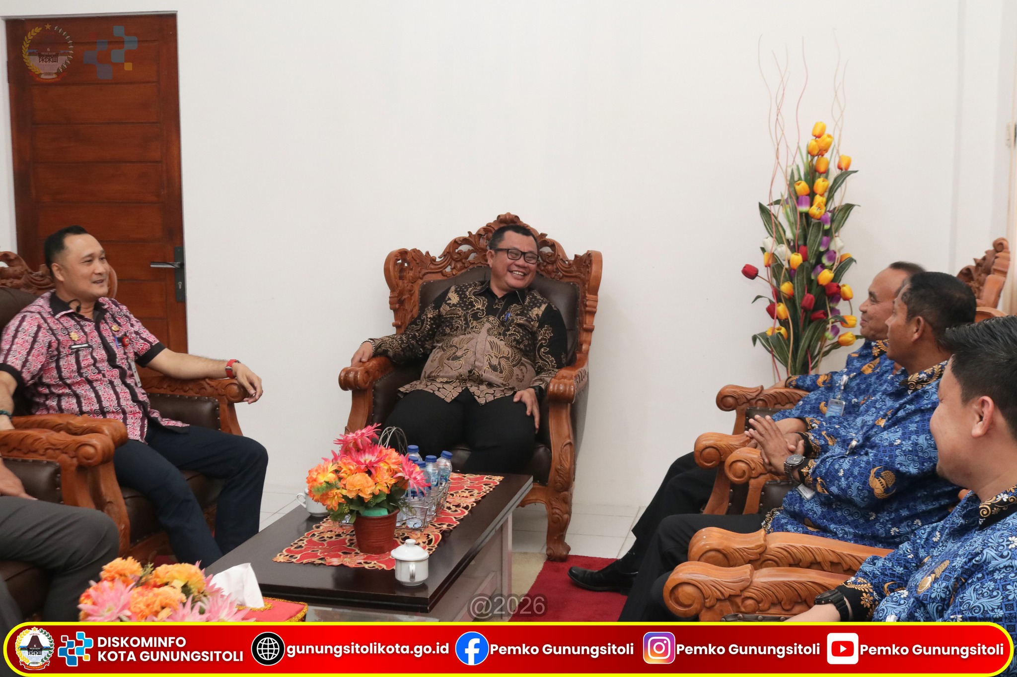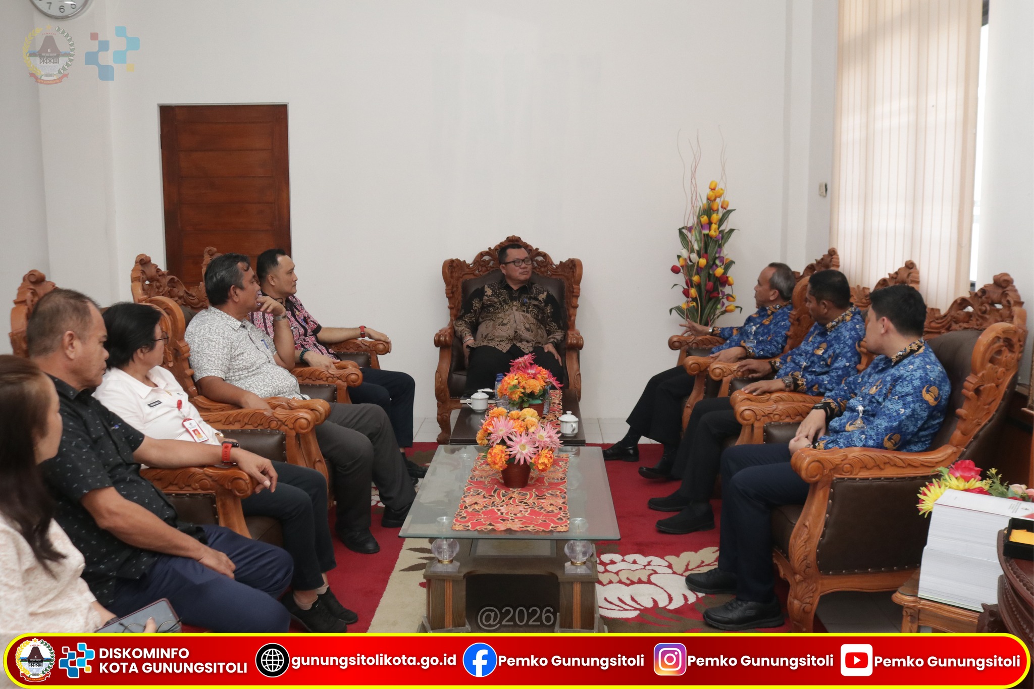 Gunungsitoli, (05/03/2026) – Wali Kota Gunungsitoli Sowa’a Laoli, S.E., M.Si., didampingi Sekretaris Daerah Kota Gunungsitoli, menerima audiensi dari perwakilan Kementerian Perhubungan Republik Indonesia guna membahas rencana pendaratan pesawat jenis Airbus A320-200 di Bandar Udara Binaka. Pertemuan tersebut berlangsung di Ruang Kerja Wali Kota Gunungsitoli pada Kamis (05/03/2026).