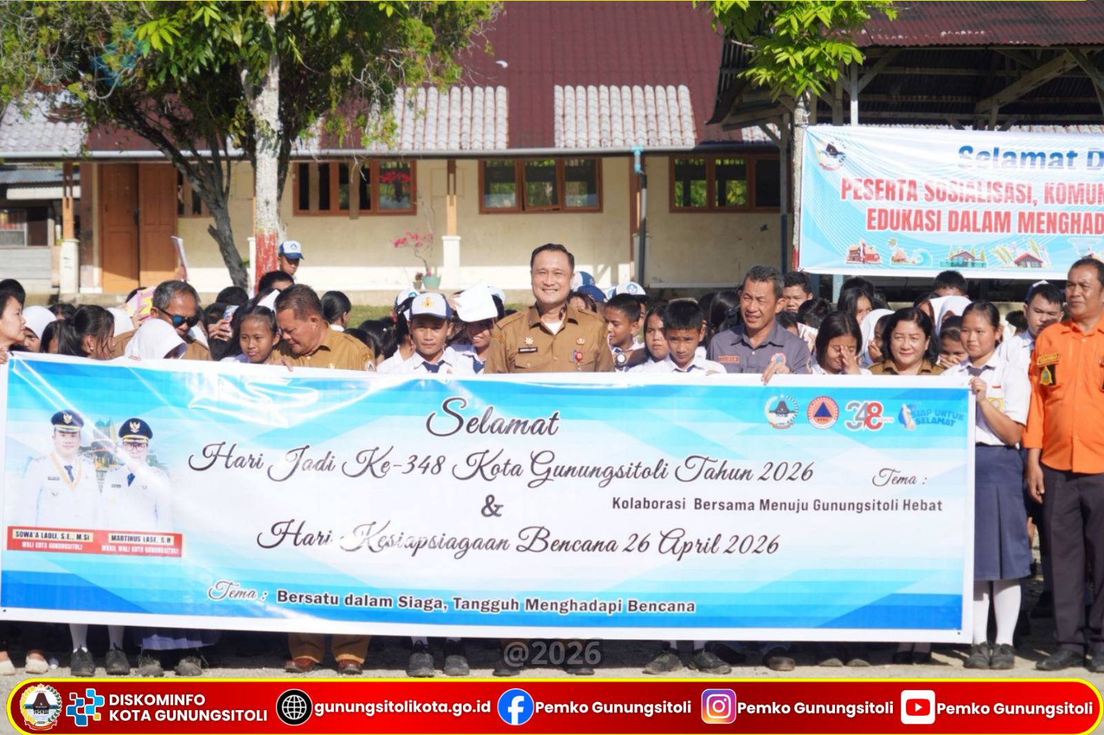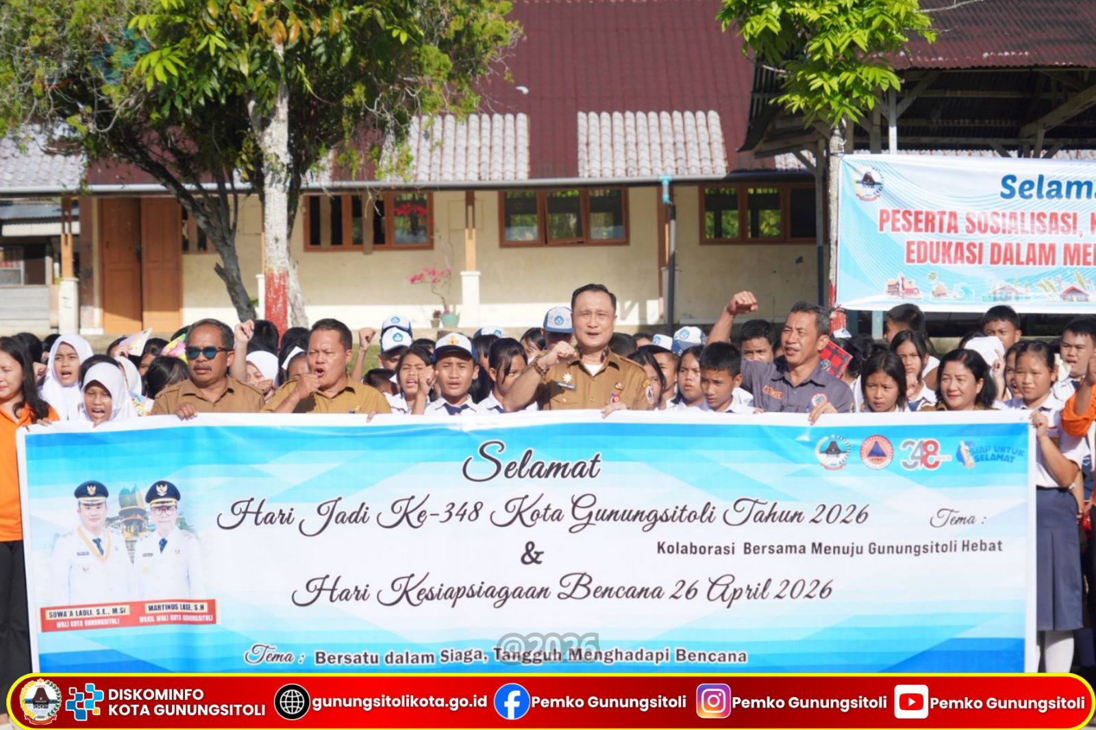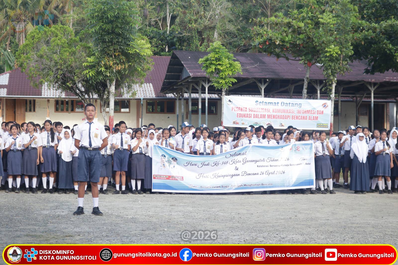 Gunungsitoli, 14 April 2026 – Sekretaris Daerah Kota Gunungsitoli, Andhika Perdana Laoly, S.STP, M.Si, CGAE, mewakili Wali Kota Gunungsitoli, menghadiri sekaligus memberikan arahan dan bimbingan pada pelaksanaan Sosialisasi Komunikasi, Informasi dan Edukasi (KIE) Rawan Bencana dalam rangka memperingati Hari Jadi Kota Gunungsitoli Ke-348 dan Hari Kesiapsiagaan Bencana (HKB) Tahun 2026. Kegiatan ini dilaksanakan di Pelataran UPTD SMP N. 3 Gunungsitoli, Selasa (14/04/).