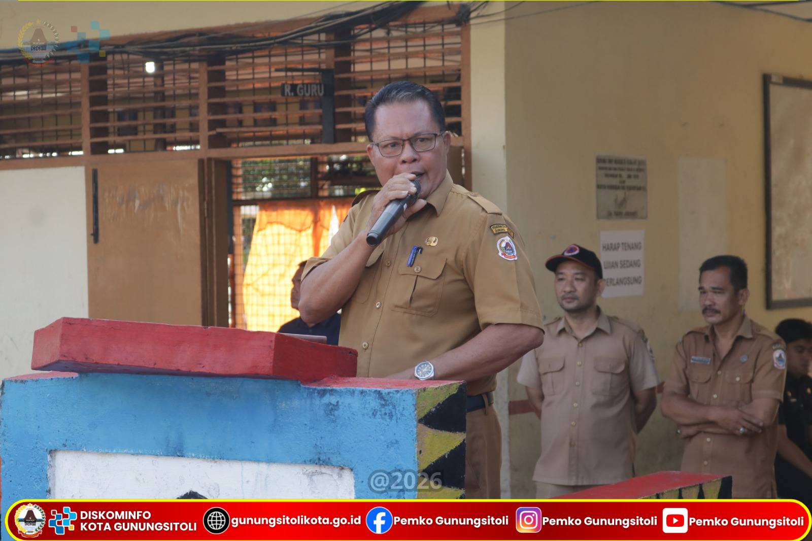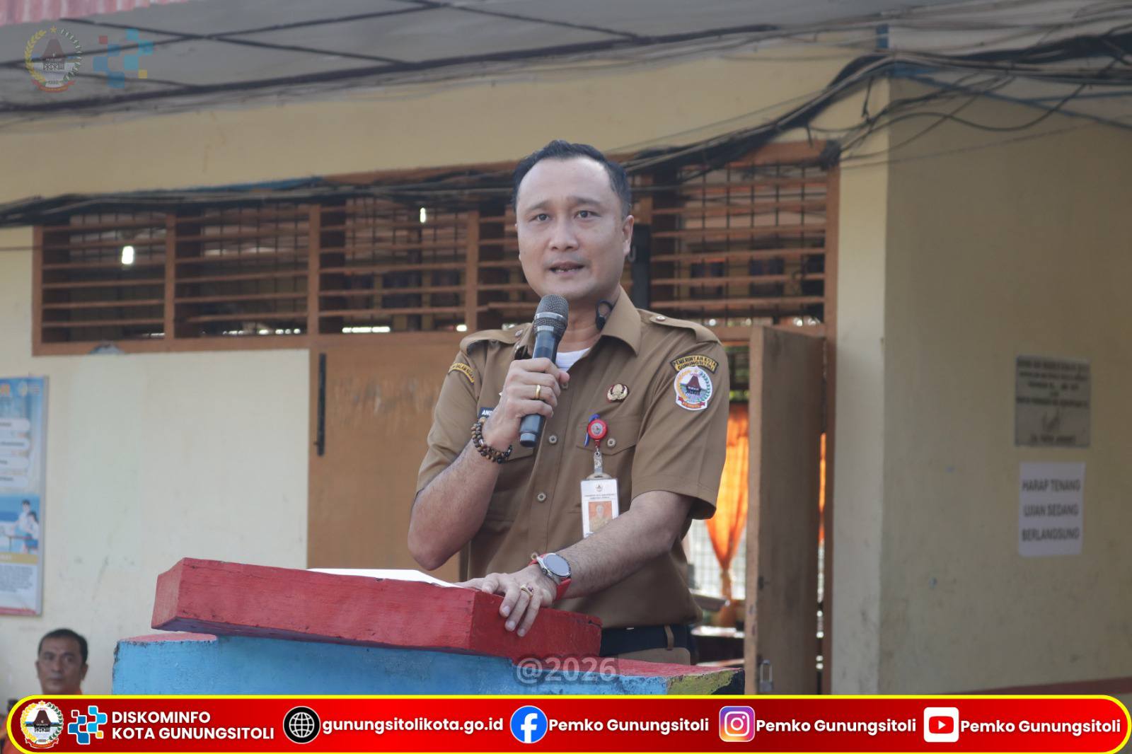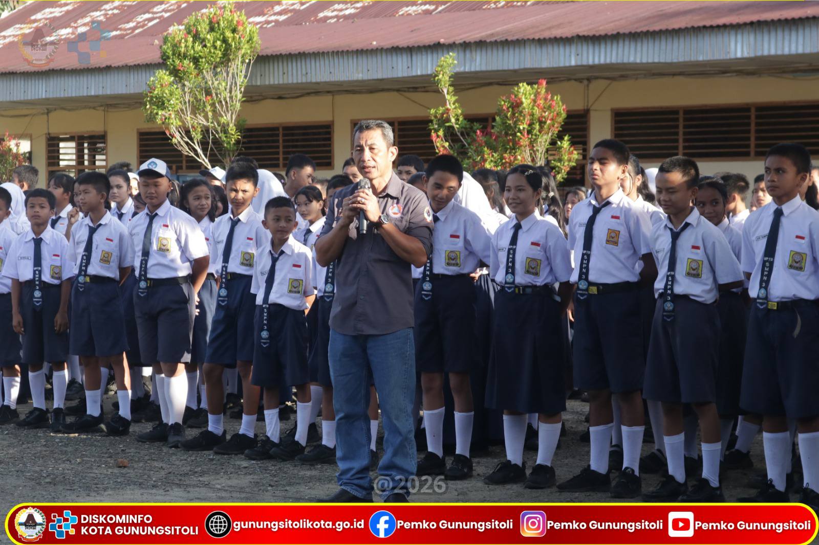 Gunungsitoli, 14 April 2026 – Sekretaris Daerah Kota Gunungsitoli, Andhika Perdana Laoly, S.STP, M.Si, CGAE, mewakili Wali Kota Gunungsitoli, menghadiri sekaligus memberikan arahan dan bimbingan pada pelaksanaan Sosialisasi Komunikasi, Informasi dan Edukasi (KIE) Rawan Bencana dalam rangka memperingati Hari Jadi Kota Gunungsitoli Ke-348 dan Hari Kesiapsiagaan Bencana (HKB) Tahun 2026. Kegiatan ini dilaksanakan di Pelataran UPTD SMP N. 3 Gunungsitoli, Selasa (14/04/).