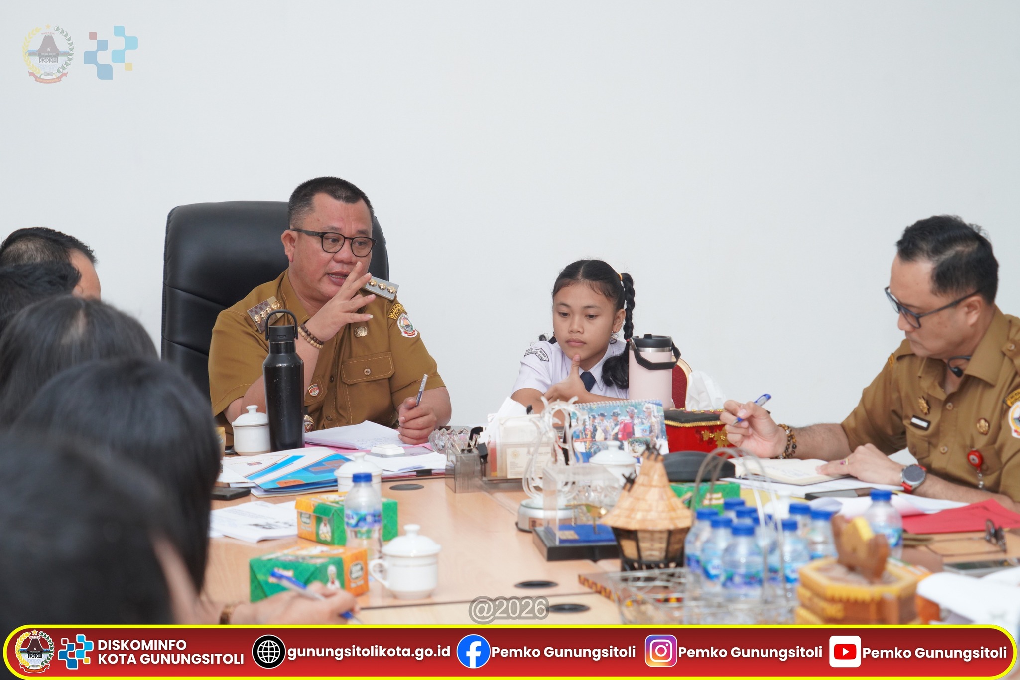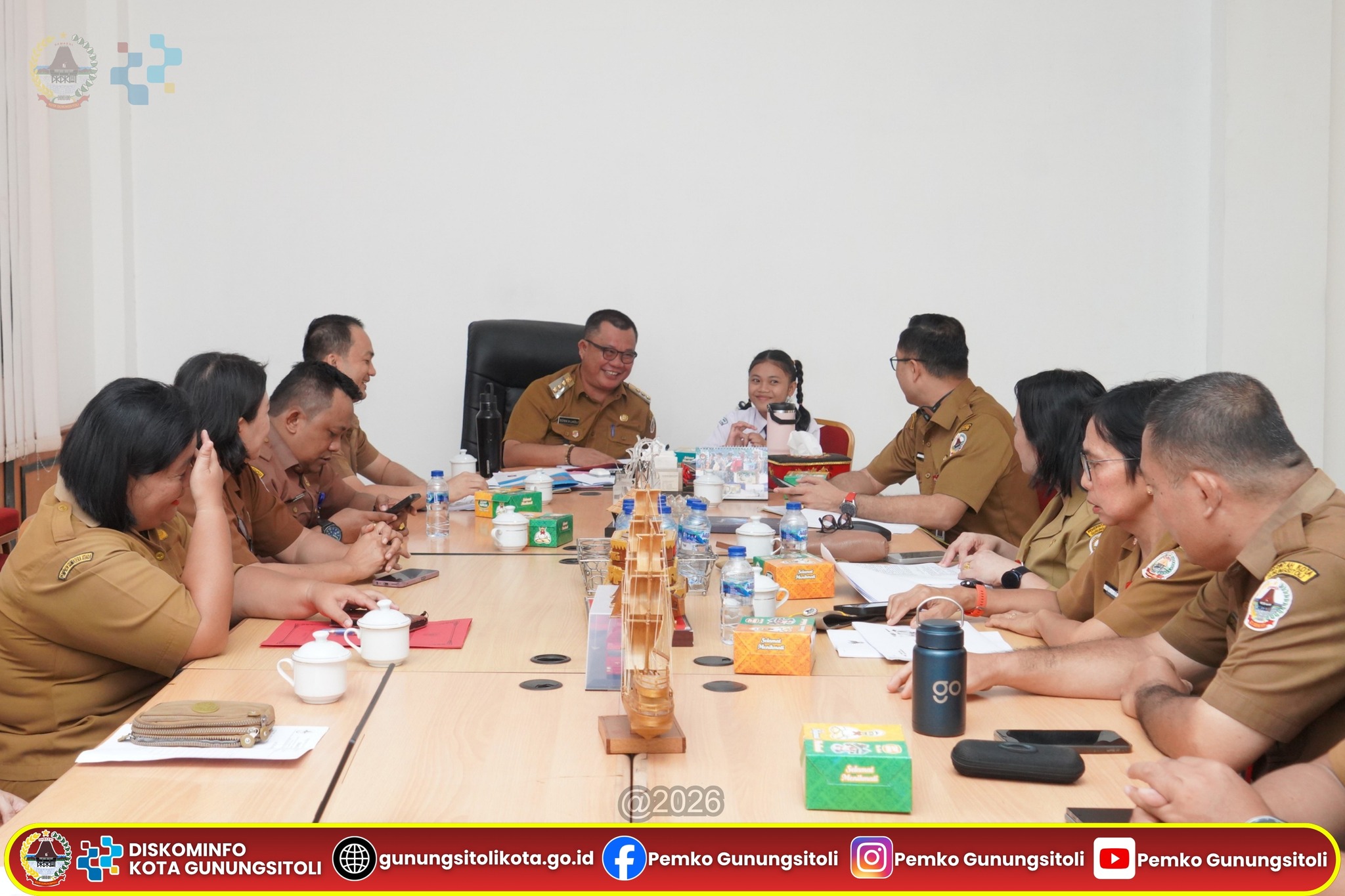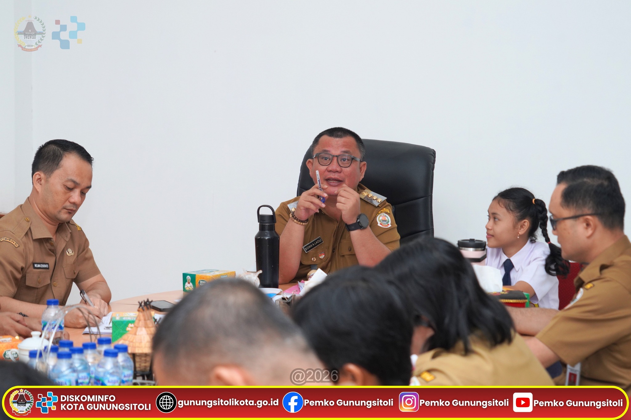 Gunungsitoli, 20 April 2026 — Ada suasana berbeda di Ruang Kerja Wali Kota Gunungsitoli, Senin (20/4/2026). Di tengah rapat koordinasi strategis bersama sejumlah Organisasi Perangkat Daerah (OPD), Wali Kota Gunungsitoli, Sowa’a Laoli, S.E., M.Si., didampingi Sekretaris Daerah Kota Gunungsitoli, Andhika Perdana Laoly, S.STP., M.Si., CGCAE., menghadirkan sosok muda inspiratif yang mencuri perhatian: Imelda Putri Cahyani Mendröfa yang berhasil meraih Juara I Lomba Pidato “Sehari Menjadi Wali Kota” dalam rangka HUT ke-348 Kota Gunungsitoli.