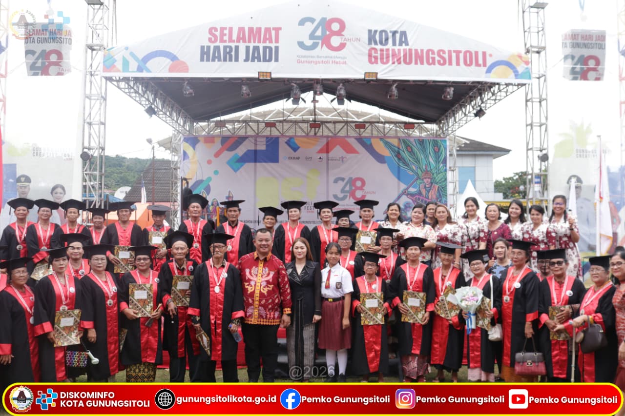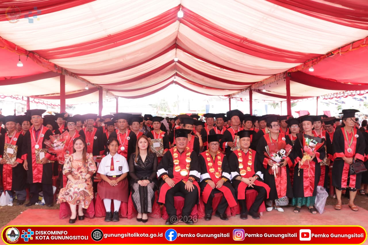 Gunungsitoli, April 2026 — Pemerintah Kota Gunungsitoli terus menunjukkan komitmennya dalam meningkatkan kualitas hidup lanjut usia melalui pelaksanaan Wisuda Sekolah Lansia S1 dan S2 se-Kota Gunungsitoli Tahun Ajaran 2025/2026 yang digelar di Alun-alun Kota Gunungsitoli, Jumat (24/04).