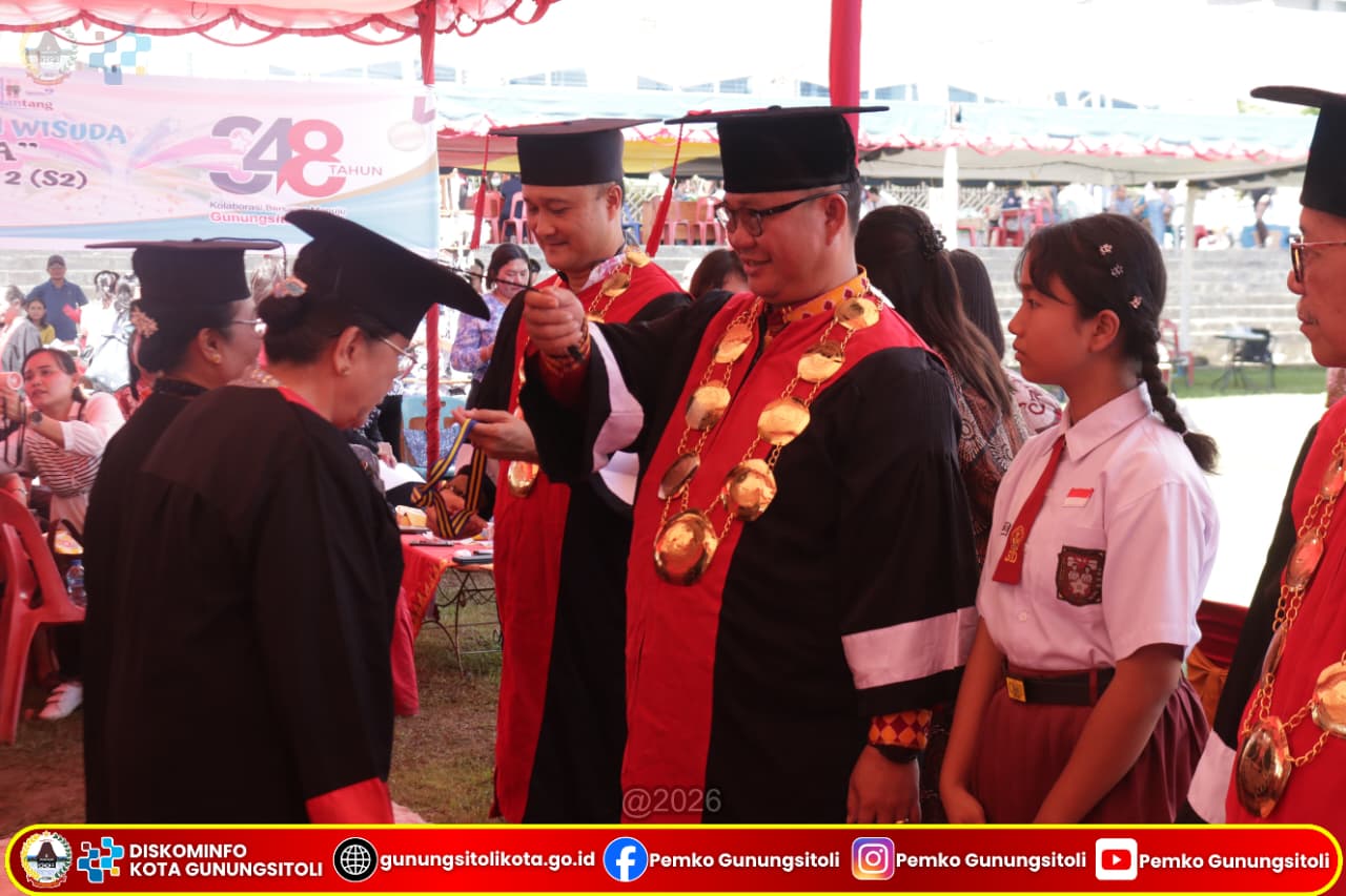 Prosesi pengukuhan wisudawan berlangsung khidmat dan penuh haru yang dilaksanakan langsung oleh Wali Kota Gunungsitoli , Sowa’a Laoli, S,E, M.Si bersama Wakil Wali Kota Gunungsitoli Martinus Lase, S.H, Sekretaris Daerah Kota Gunungsitoli.