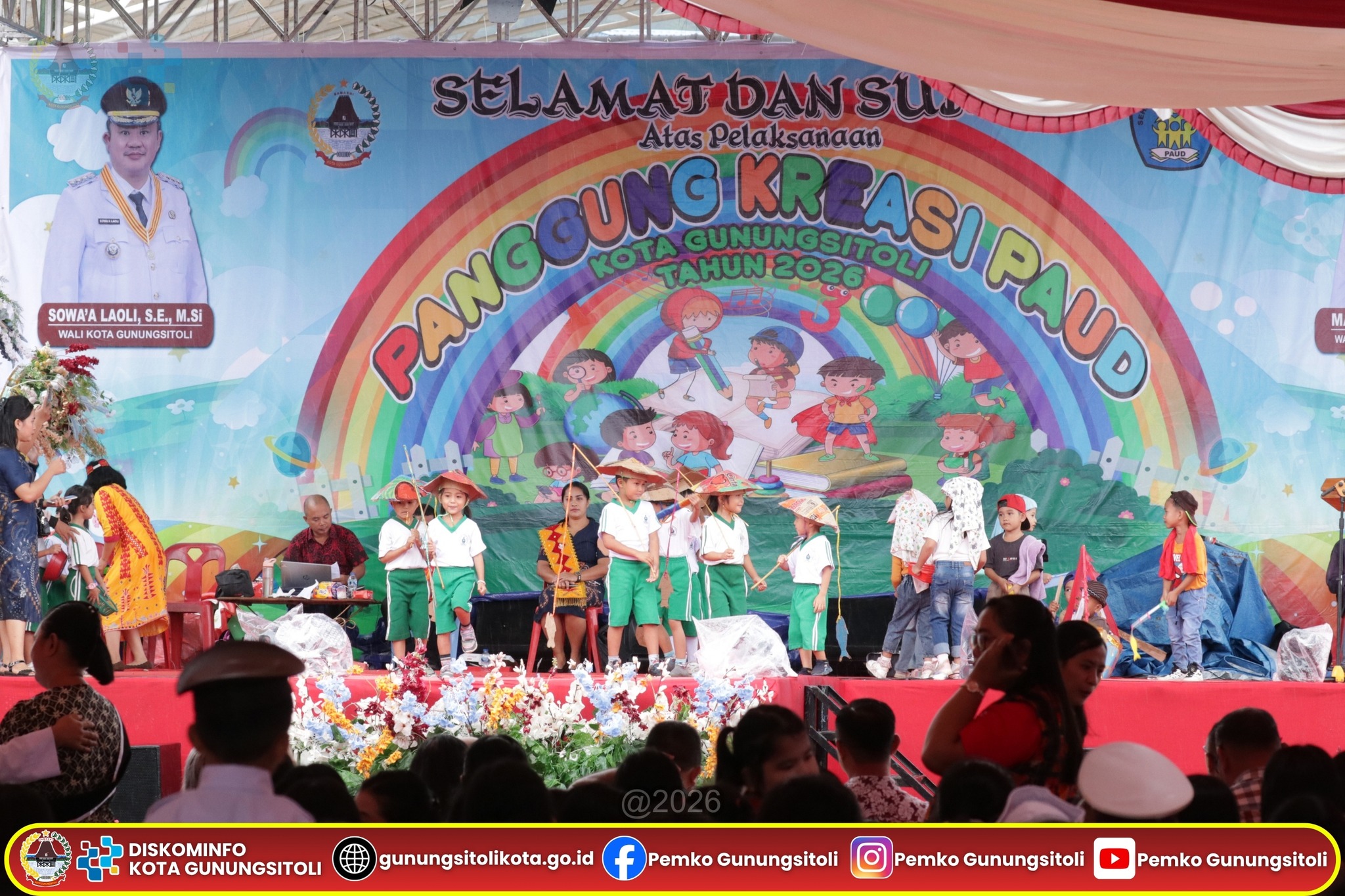 Gunungsitoli, 23 April 2026 – Meskipun sempat diguyur hujan, kegiatan Panggung Kreasi Anak PAUD dalam rangka memeriahkan Hari Jadi ke-348 Kota Gunungsitoli tetap berlangsung meriah dan penuh semangat di Alun-alun Kota Gunungsitoli, Kamis (23/04).