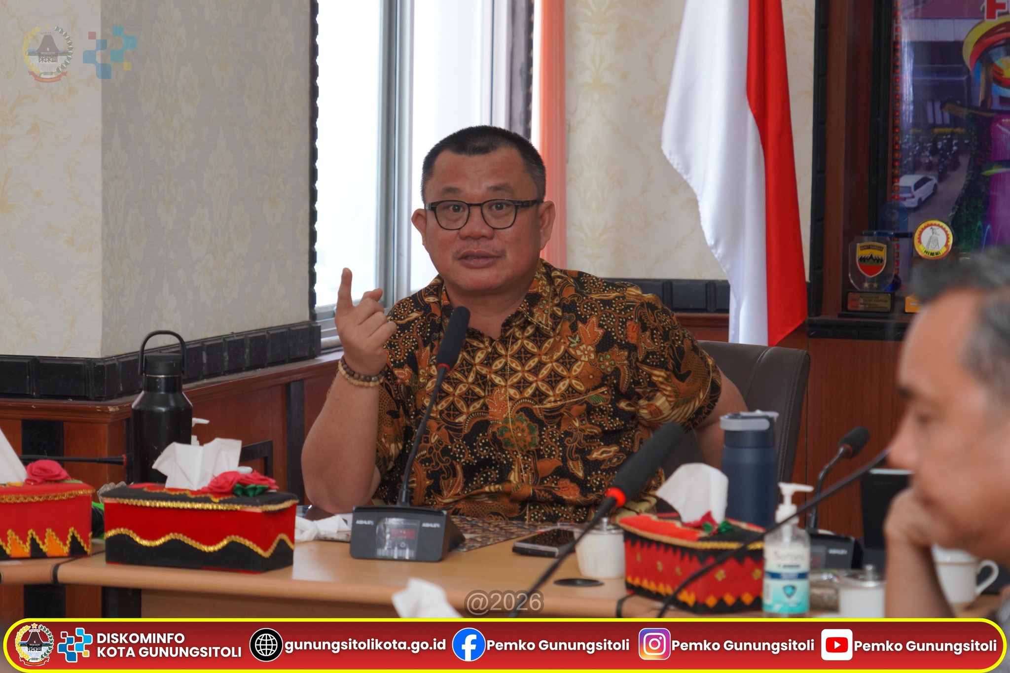 Gunungsitoli, (02/04/2026) — Wali Kota Gunungsitoli, Sowa’a Laoli, S.E., M.Si., didampingi Sekretaris Daerah Kota Gunungsitoli, Andhika P. Laoly, S.STP., M.Si., CGCAE, mengikuti pertemuan dalam rangka optimalisasi Pendapatan Asli Daerah (PAD) Kota Gunungsitoli yang dilaksanakan di Ruang Rapat Center Kantor Wali Kota Gunungsitoli, Kamis (02/04/2026).