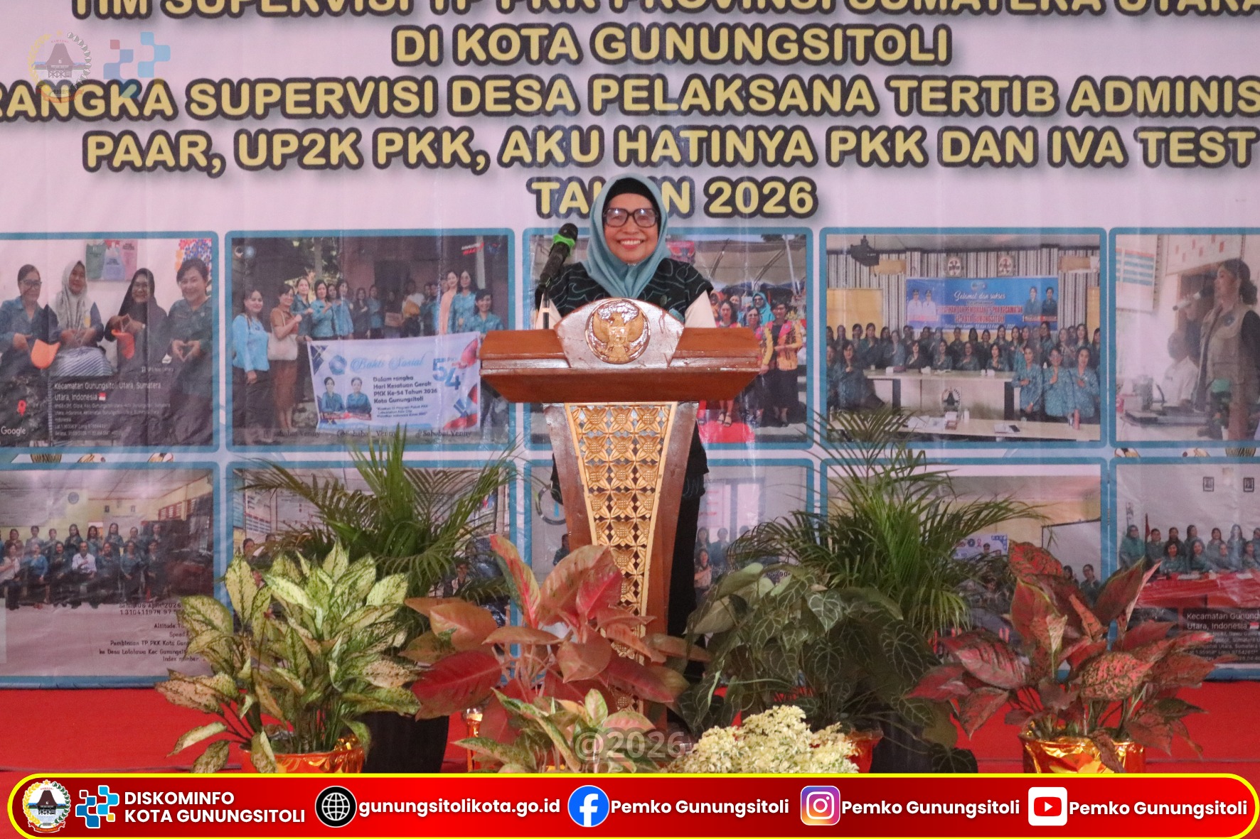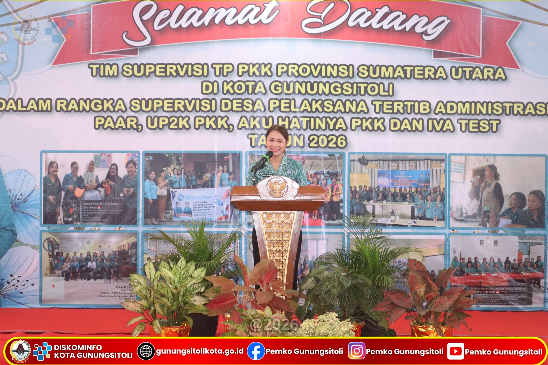 Dalam sambutannya, Ny. Veny Sowa’a Laoli menyampaikan ucapan selamat datang kepada Tim Supervisi sekaligus melaporkan capaian dan kegiatan PKK Kota Gunungsitoli. Ia menegaskan bahwa PKK Kota Gunungsitoli Tahun 2026 lebih fokus dalam memperkuat ketahanan keluarga melalui integrasi 10 Program Pokok PKK dengan kebijakan pemerintah daerah, terutama penurunan angka stunting, peningkatan ekonomi keluarga melalui UP2K, serta pemanfaatan pekarangan melalui program Aku Hatinya PKK.