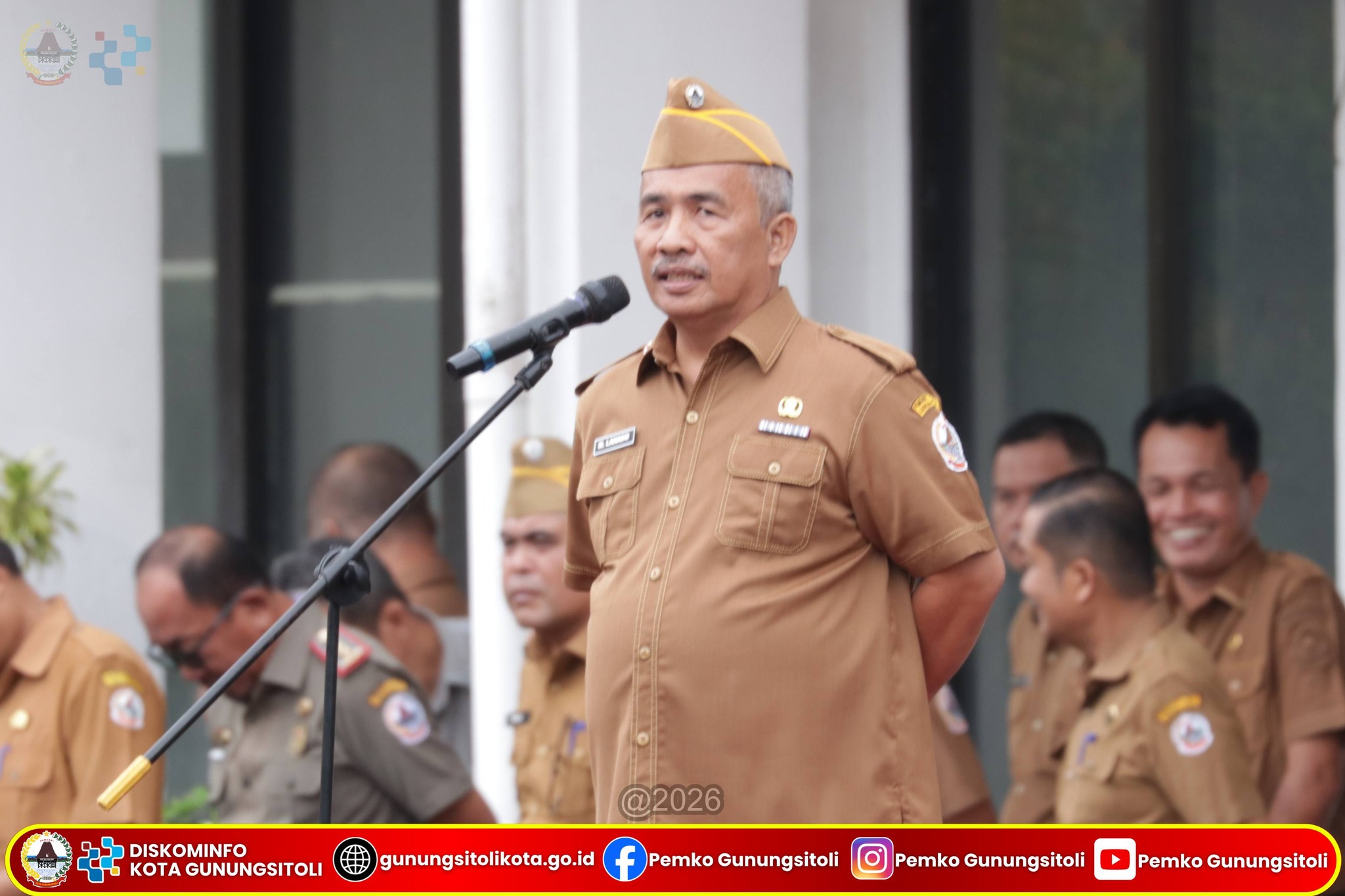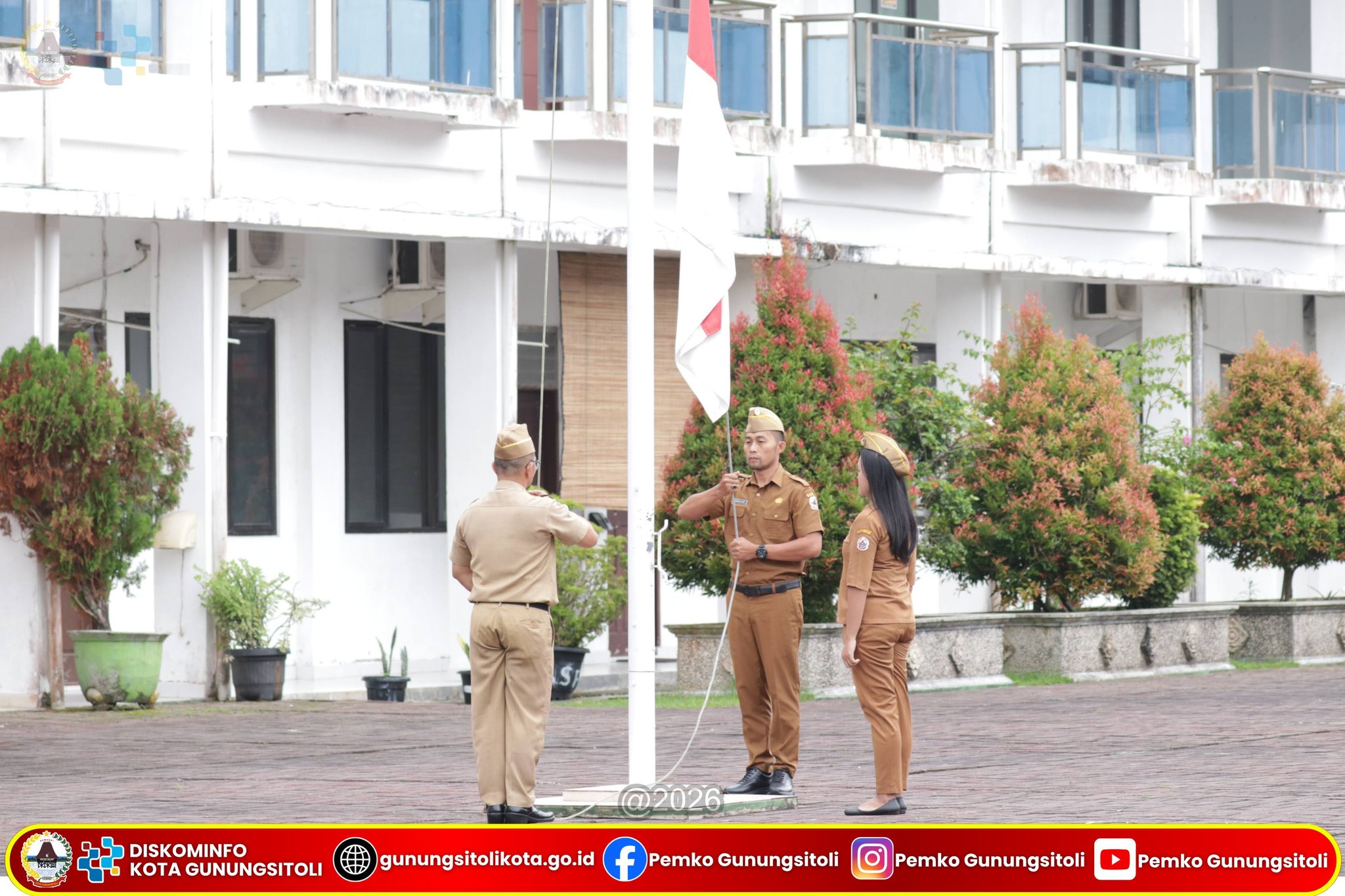 Gunungsitoli, 13 April 2026 – Pemerintah Kota Gunungsitoli melaksanakan upacara bendera rutin yang diikuti oleh seluruh Aparatur Sipil Negara (ASN) di halaman Kantor Wali Kota Gunungsitoli, Senin (13/04). Upacara tersebut terlaksana dengan tertib oleh jajaran pegawai di lingkup Pemerintah Kota Gunungsitoli.