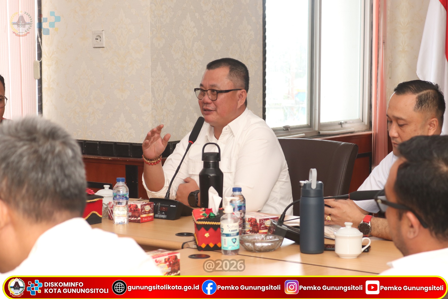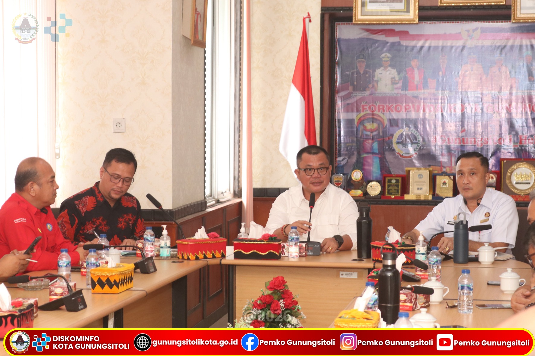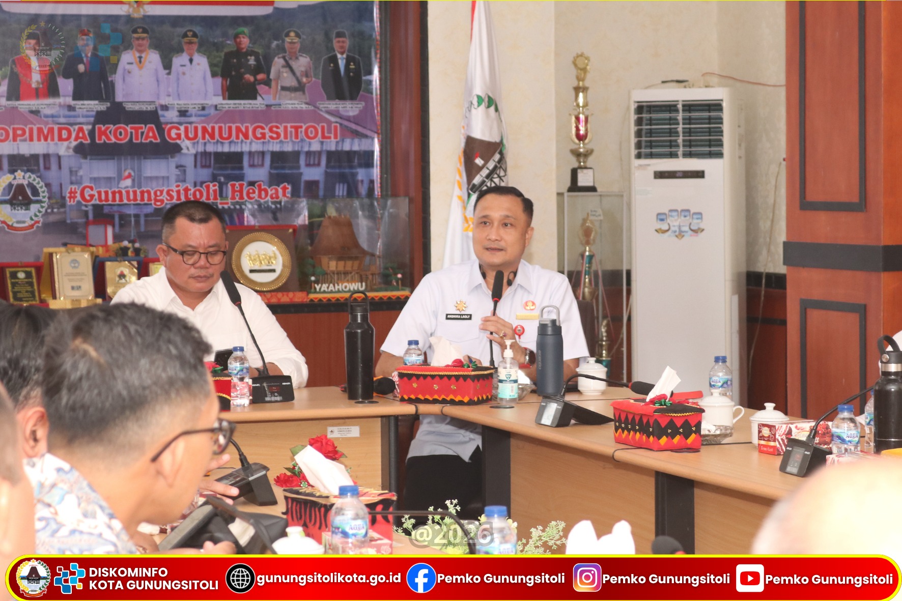 Gunungsitoli, 1 April 2026 – Wali Kota Gunungsitoli Sowa’a Laoli, S.E, M.Si menghadiri audiensi bersama pihak PLN Indonesia Power dalam rangka membahas rencana pembangunan Pembangkit Listrik Tenaga Mesin Gas (PLTMG) Nias 2 dan Nias 3 yang berlangsung di Ruang Rapat Center Kantor Wali Kota Gunungsitoli, Rabu (01/04).