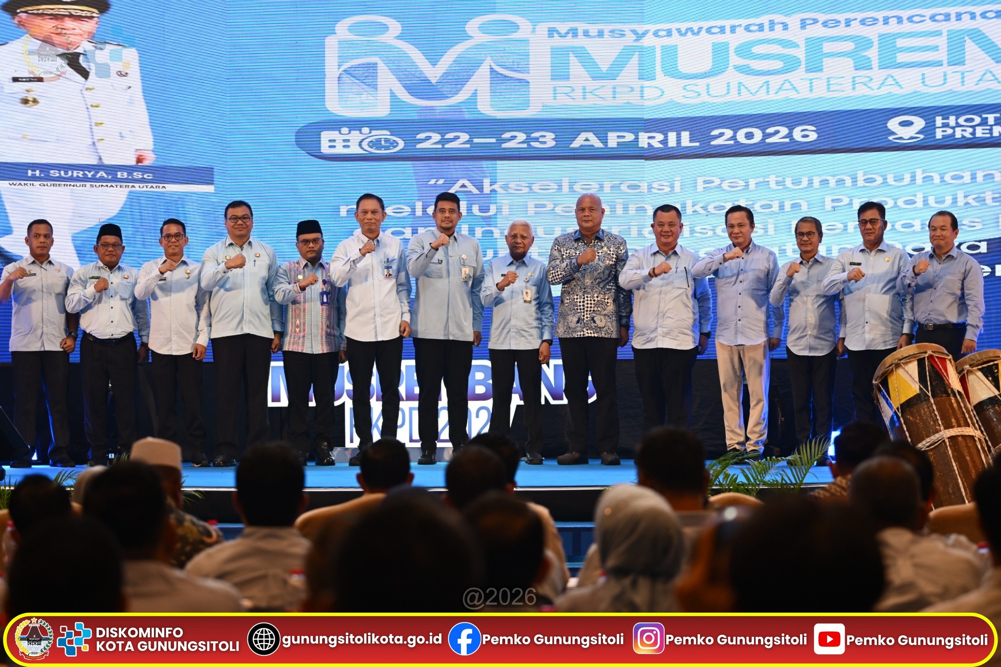 Gunungsitoli, 23 April 2026–Wali Kota Gunungsitoli, Sowa’a Laoli, S.E., M.Si menghadiri secara langsung pembukaan Musyawarah Perencanaan Pembangunan (Musrenbang) Rencana Kerja Pemerintah Daerah (RKPD) Provinsi Sumatera Utara Tahun 2027 yang diselenggarakan di Kota Medan, 22/04/2026. Momentum ini menjadi sarana strategis bagi Pemerintah Kota Gunungsitoli dalam menyelaraskan arah kebijakan daerah dengan program strategis tingkat Provinsi.