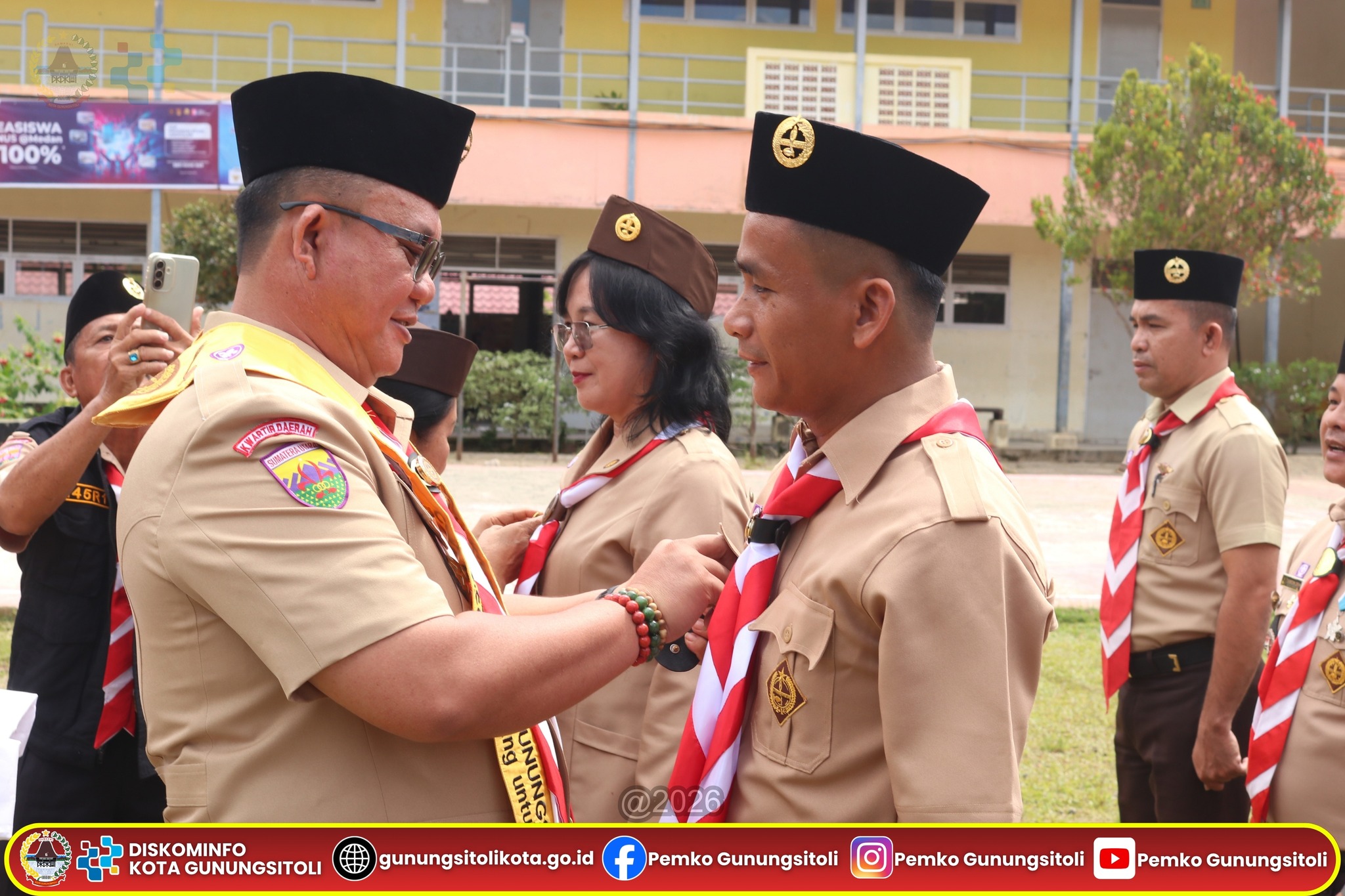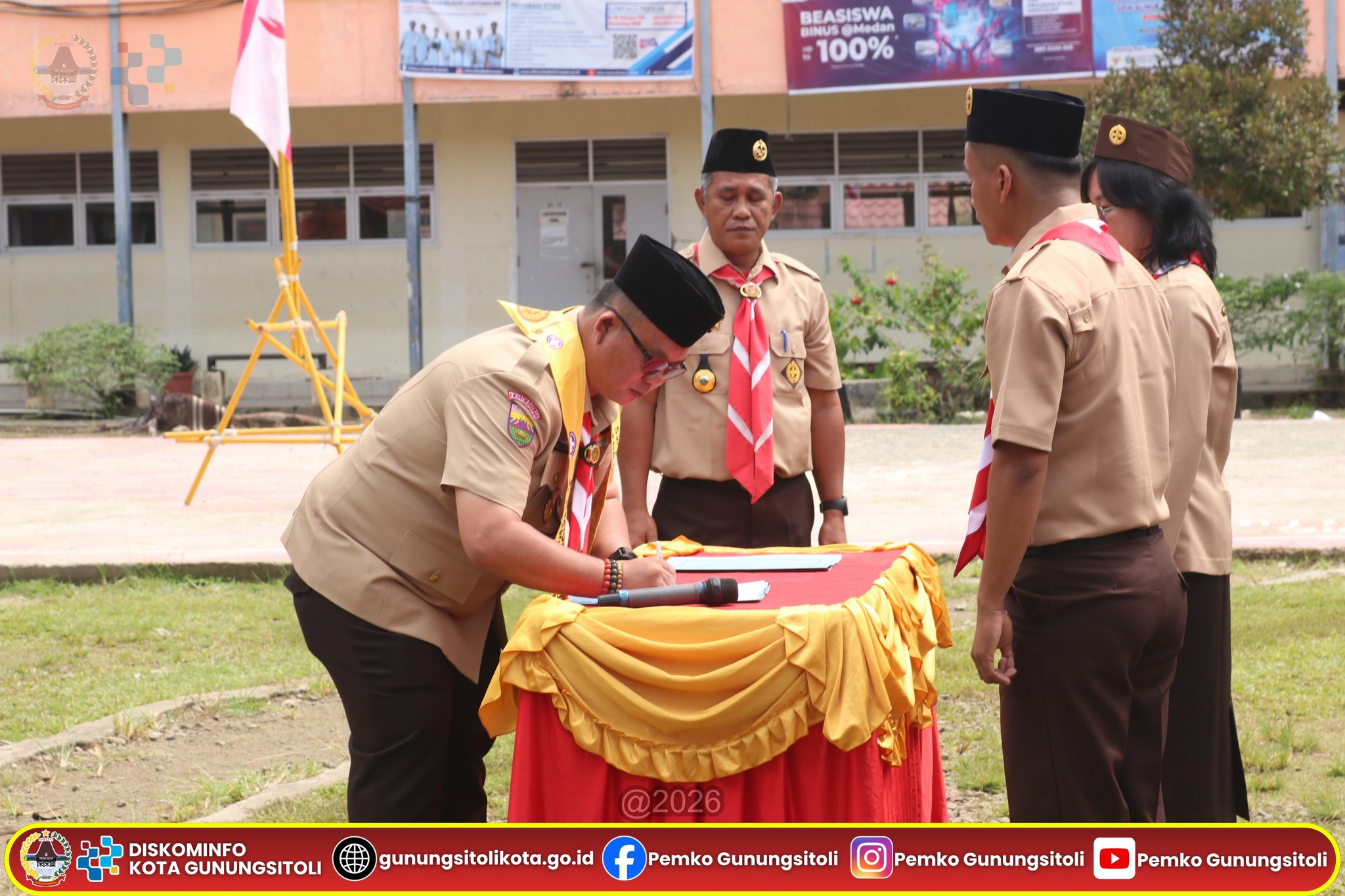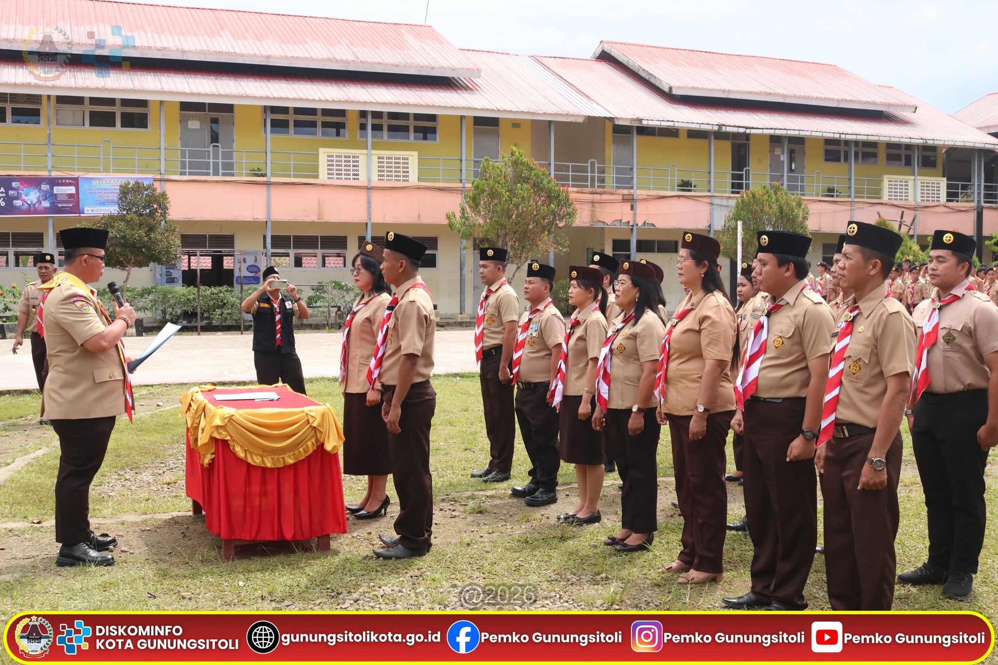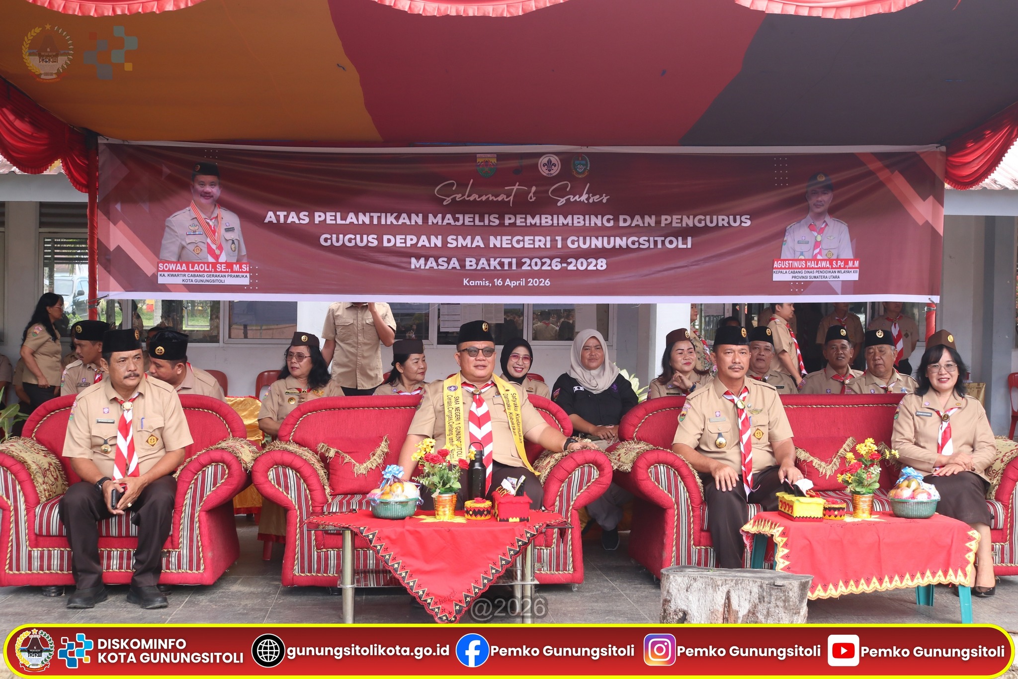 Gunungsitoli, 16 April 2026 – Wali Kota Gunungsitoli juga selaku Ketua Kwartir Cabang Gerakan Pramuka Kota Gunungsitoli secara resmi mengukuhkan Pengurus Majelis Pembimbing dan Pengurus Gugus Depan 01.103 dan 01.104 yang berpangkalan di SMA Negeri 1 Gunungsitoli untuk masa bakti 2026–2028, Kamis (16/04).