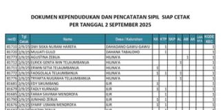Dokumen Kependudukan dan Pencatatan Sipil Siap Cetak per Tanggal 2 September...