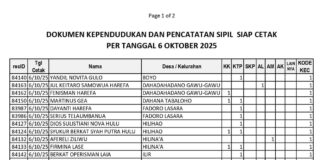 Dokumen Kependudukan dan Pencatatan Sipil Siap Cetak per Tanggal 6 Oktober...