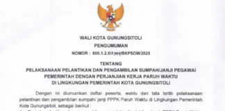 Pengumuman tentang Pelaksanaan Pelantikan dan Pengambilan Sumpah/Janji Pegawai Pemerintah dengan Perjanjian...