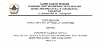 Pengumuman Penetapan Kandidat Terpilih Hasil Seleksi Terbuka Sekretaris Daerah Kota Gunungsitoli