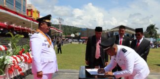 Upacara Penurunan Bendera Pada HUT Ke-79 KEMRI Pemerintah Kota Gunungsitoli Tahun...