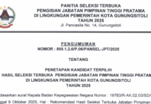 Pengumuman tentang Penetapan Kandidat Terpilih Hasil Seleksi Terbuka Pengisian Jabatan Pimpinan Tinggi Pratama di...