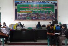 Pelaksanaan Serbuan Vaksinasi TNI di Makodim 0213/Nias disambut antusias masyarakat.