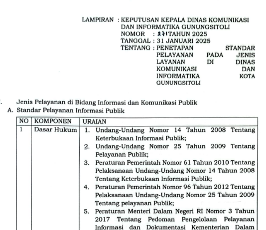 Standar Pelayanan di Dinas Komunikasi dan Informatika Kota Gunungsitoli